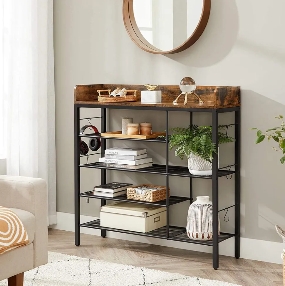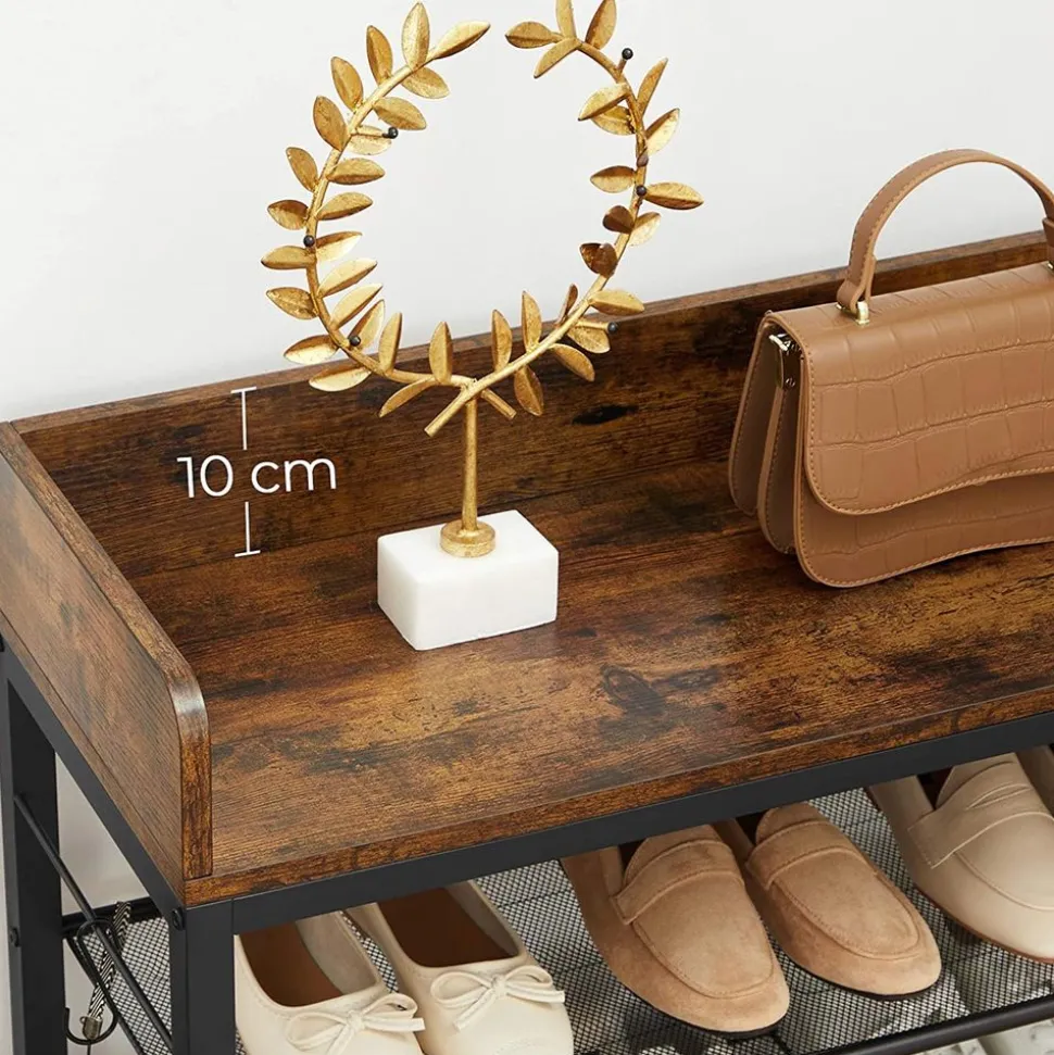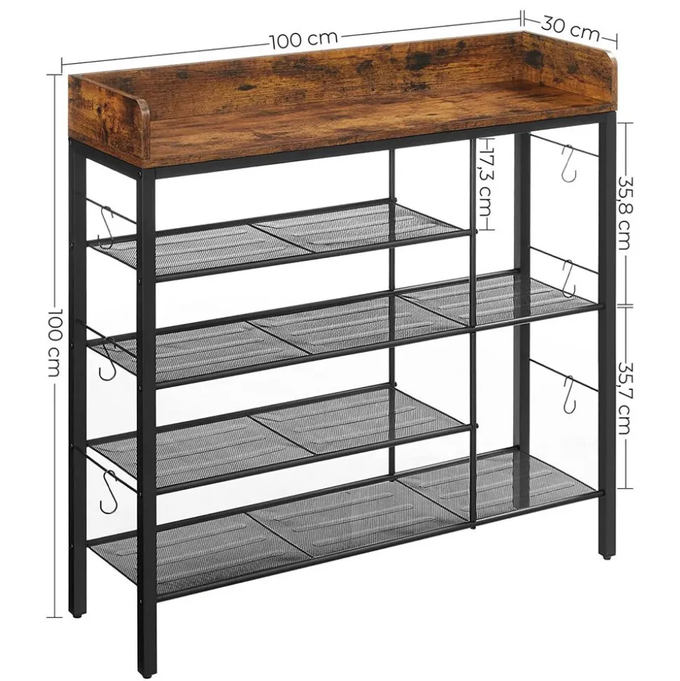 Je ne peux pas attendre pour vivre dessus : C’est ce que pensent vos chaussures en voyant cette étagère. Le cadre en acier noir est adouci par la couleur marron rustique. Voilà une maison de rêve, chaleureuse et charmante, pour vos chaussures