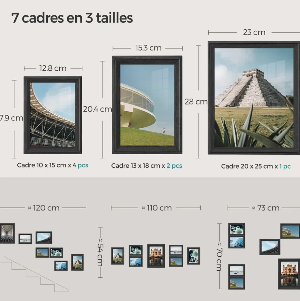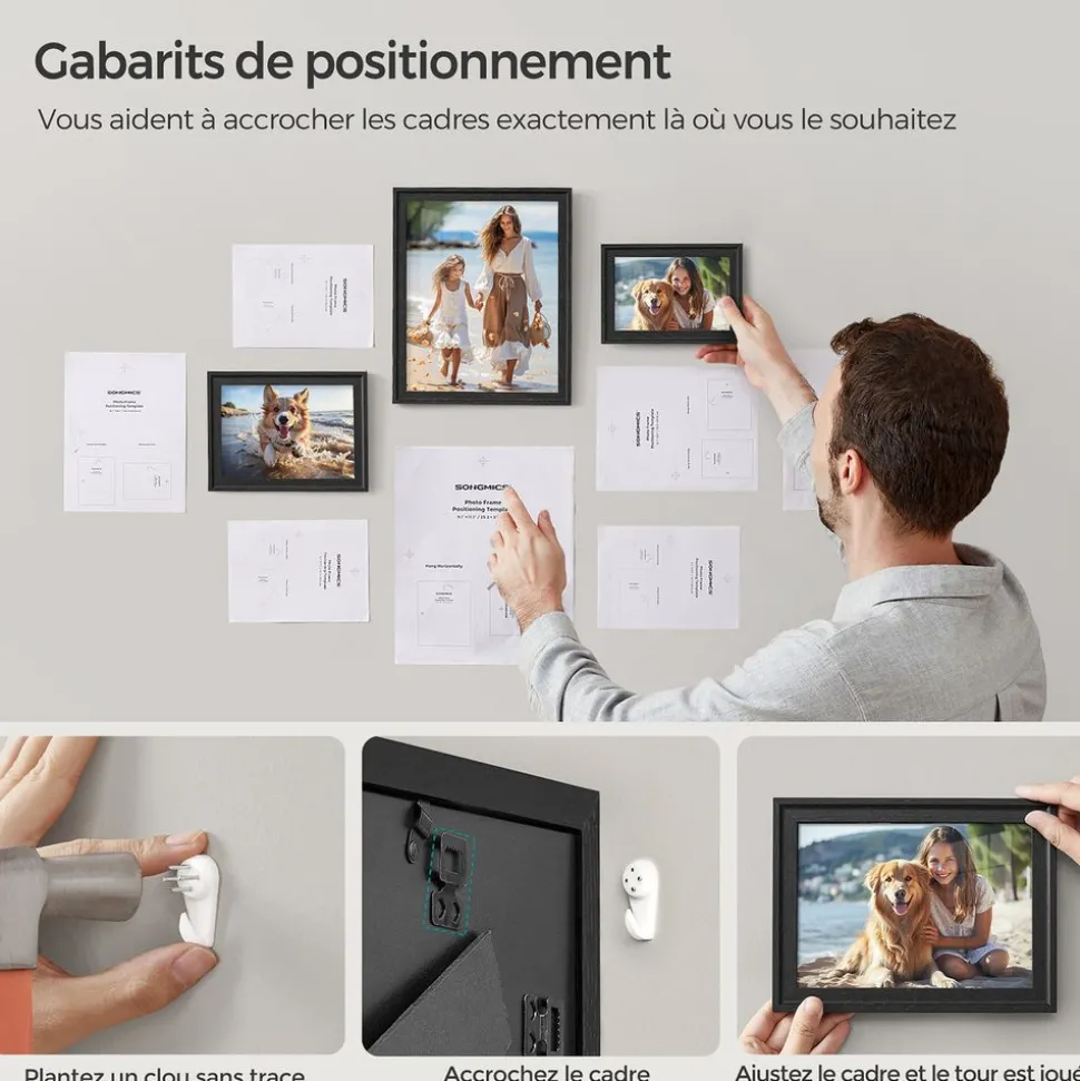 [Affichez vos souvenirs] Des visages de vos proches aux bons moments passés entre amis ou en famille, ce pêle-mêle vous permet de montrer une foule d’instants merveilleux. Il se compose de 12 cadres, chacun parfaitement adapté aux photos 10×15 cm[Qualité et clarté réunies] Fabriqués en MDF épais et dotés de verre à haute transparence avec des bords poncés, ces cadres photo pêle-mêle offrent une présentation claire de vos photos tout en assurant la sécurité[Changements de photos faciles] Dotés de clips rotatifs au dos, ce pêle-mêle mural permet de changer les photos aisément, pour actualiser vos cadres à tout moment avec de nouveaux souvenirs, sans le moindre souci[Assemblage facile] Grâce à des instructions simples et à des cadres numérotés au dos, il est facile d’assembler ce pêle-mêle, qui apportera instantanément une touche personnelle à votre salon, à votre chambre ou à votre bureau[Ce que vous obtenez] Un pêle-mêles avec 12 cadres photos de format 10×15 cm qui feront un cadeau idéal pour la famille ou les amis. Notez que les photos présentées dans les cadres sont différentes de celles affichées sur la page