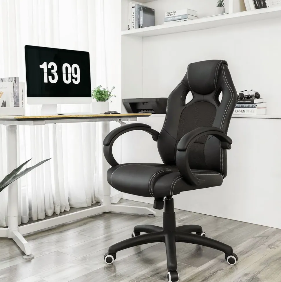 SUPPORT DE QUALITÉ : La base en étoile robuste (diamètre de 64 cm), le vérin à gaz et les roulettes en nylon offrent un support solide et stable. Ce fauteuil support jusqu’à 120 kg. Il ne vacillera pas chaque fois que vous voudrez vous tourner