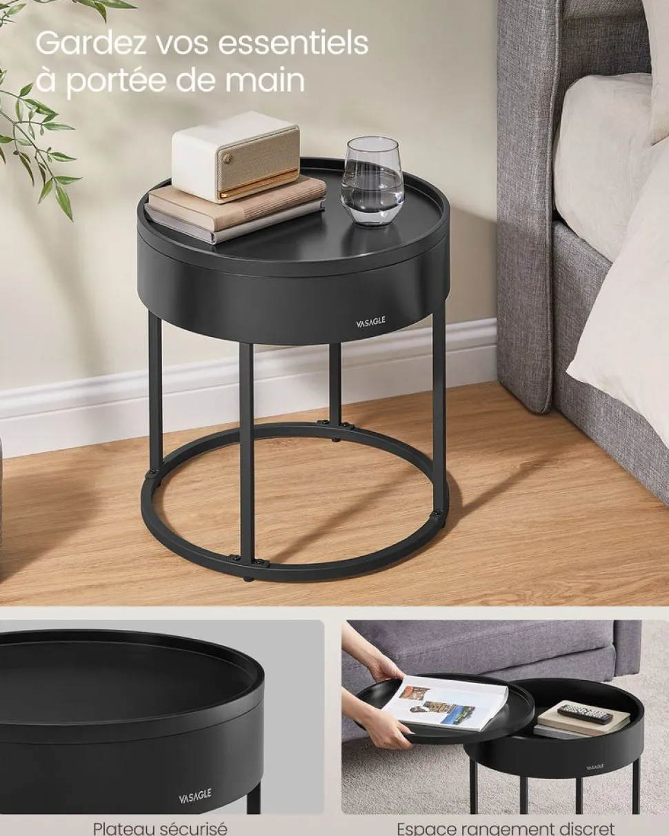【GRAND ESPACE DE RANGEMENT】Chaque table d’appoint est dotée d’un compartiment idéal pour ranger des objets divers. Lorsqu’elles sont combinées, elles peuvent former une grande table, offrant un accès pratique à vos télécommandes et autres objets utilisés