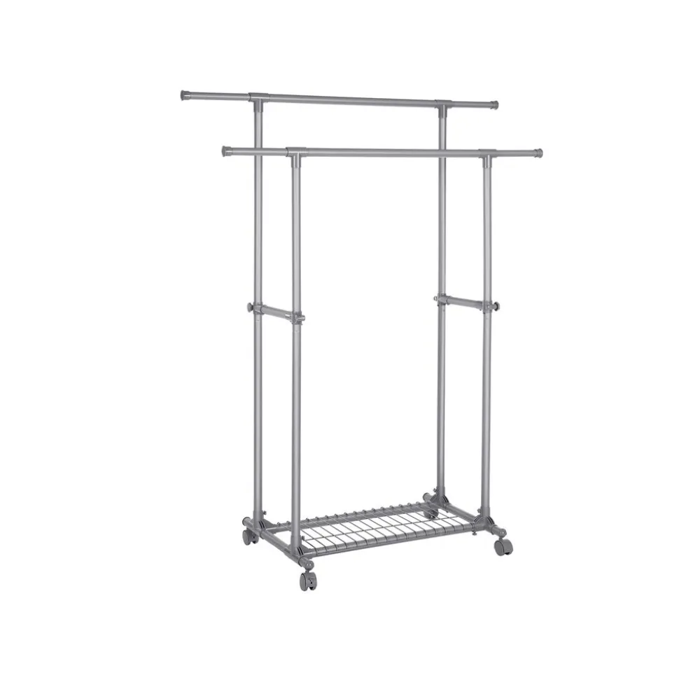 ACCROCHEZ-LES TOUS ! Lorsque votre armoire déborde, demandez de l’aide à ce portant. Avec 2 barres extensibles, 2 barres latérales réglables en hauteur et une grille en bas pour vos chaussures, vous ne serez jamais à court d’espace de rangement !