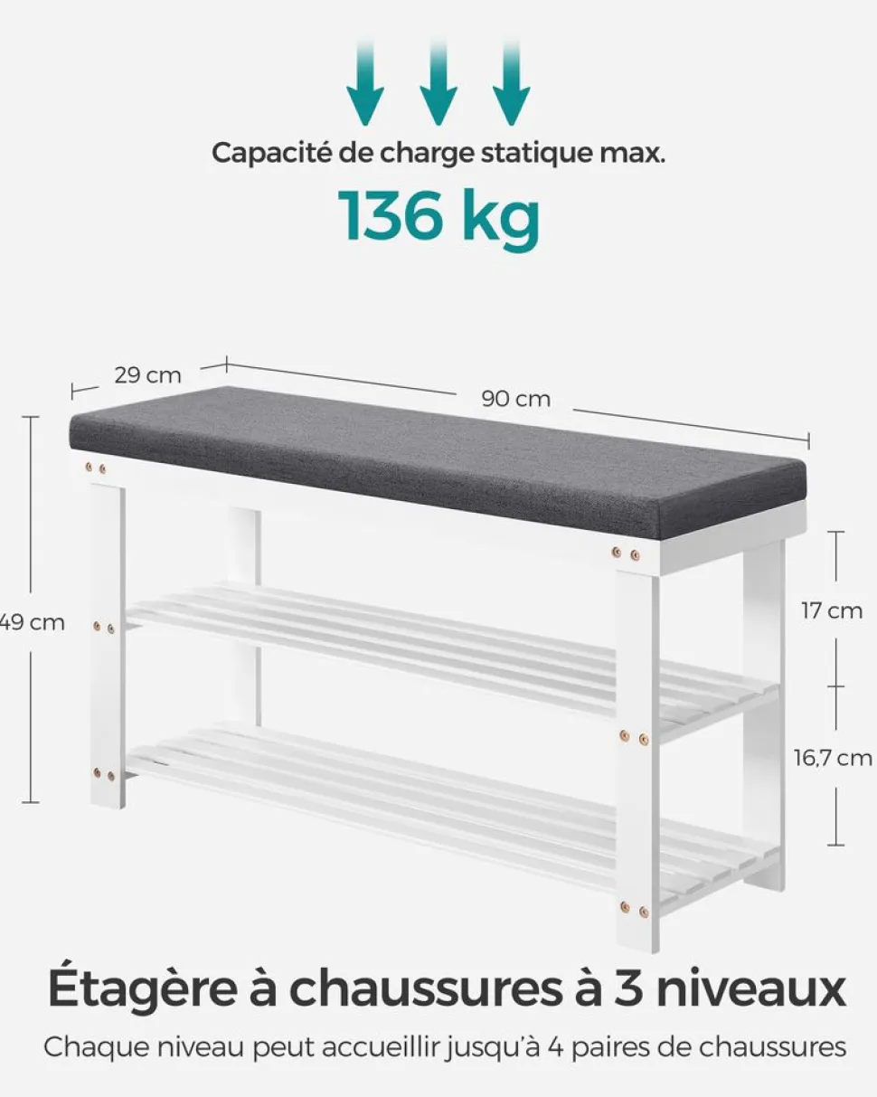 SKU: SKULCR004N01 Categories: Bancs De Rangement, Bancs De Rangement, Bancs De Rangement, Chambre, Entrée, Meubles, Meubles À Chaussures, Meubles À Chaussures, Rangements, Rangements Par Types, Salon Tags: Beige Naturel, Blanc Nuage, Noir D'encre, SONGMICS Brand: SONGMICS