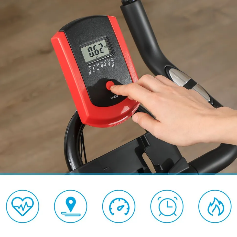 Pliez-le : Pas beaucoup de place ? Grâce à sa structure pliable et à ses 2 roues, il suffit de plier ce vélo d’exercice quand vous avez fini votre séance et de le faire rouler pour le ranger