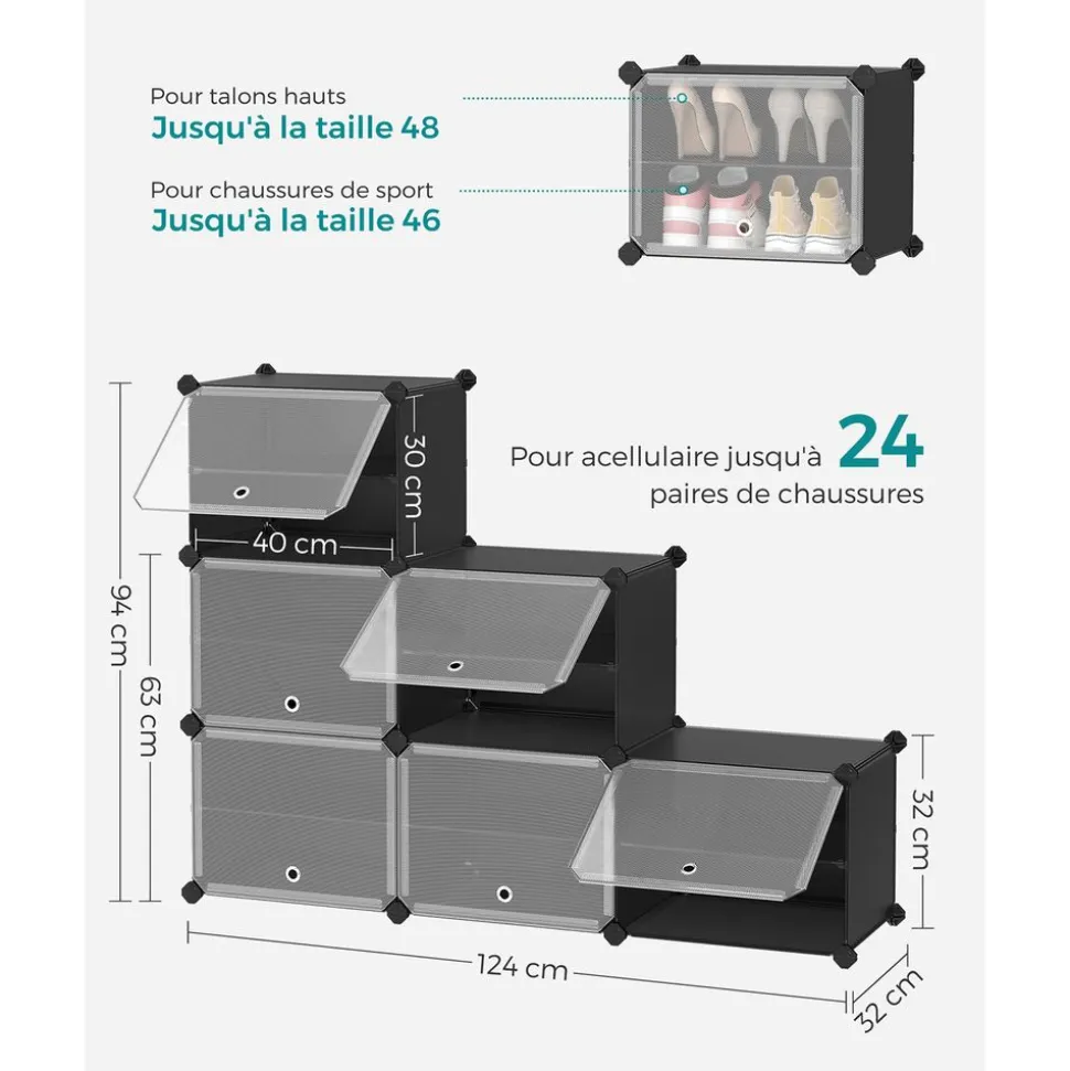 – Capacité de charge statique max. de chaque étagère : 10 kg -
