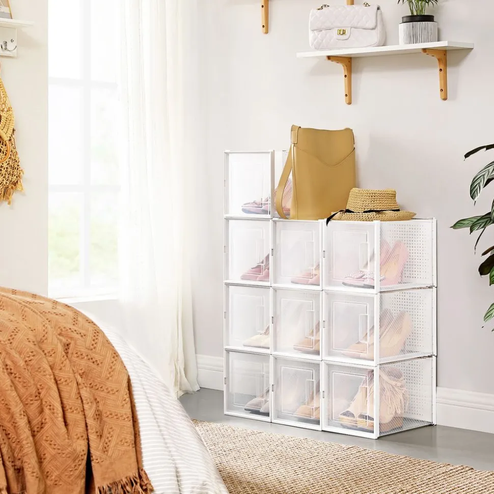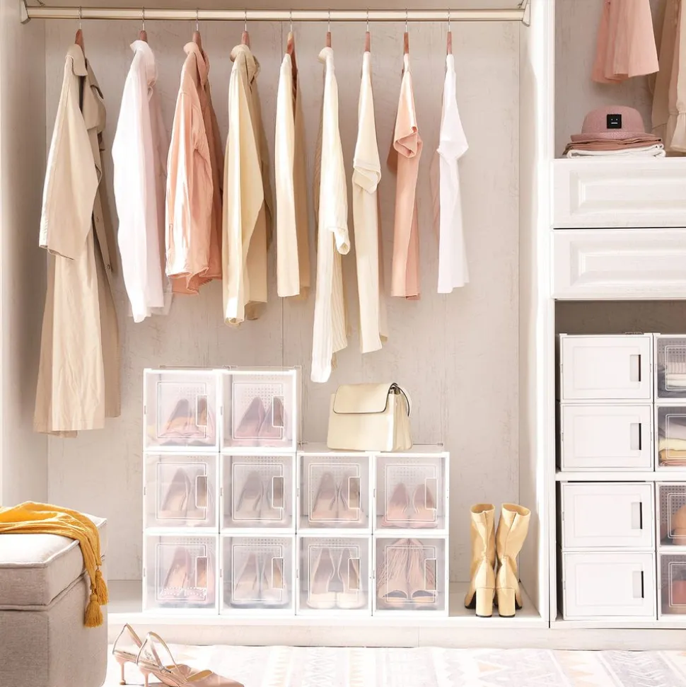 Ce que vous obtenez : Lot de 10 boîtes à chaussures transparentes pour talons hauts empilables et pliables avec portes transparentes et trous d’aération. Dites adieu aux chaussures éparpillées partout et mettez-les en ordre dès maintenant !