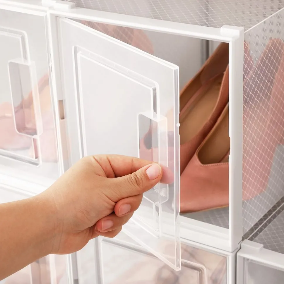 C’est clair : Avec des boîtes transparentes qui donnent un aperçu de l’intérieur, vous n’avez plus besoin de tout remuer pour trouver la paire que vous cherchez. En plus, elles ont des portes pour que vous puissiez attraper facilement vos chaussures