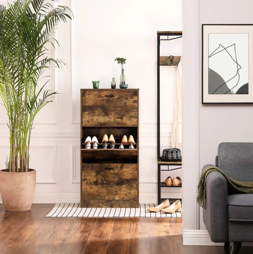 ÇA VOUS DIT UN PETIT CÔTÉ INDUSTRIEL ? Ce meuble à chaussures polyvalent et chic dégage un charme industriel incomparable. “Waouh”, c’est ce que diront vos futurs invités