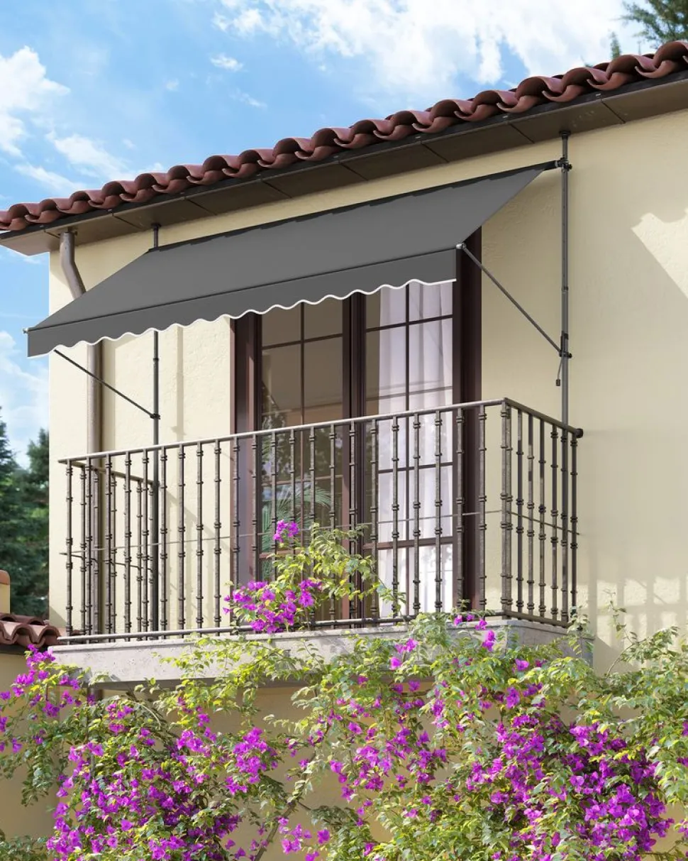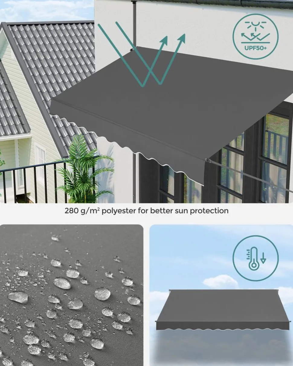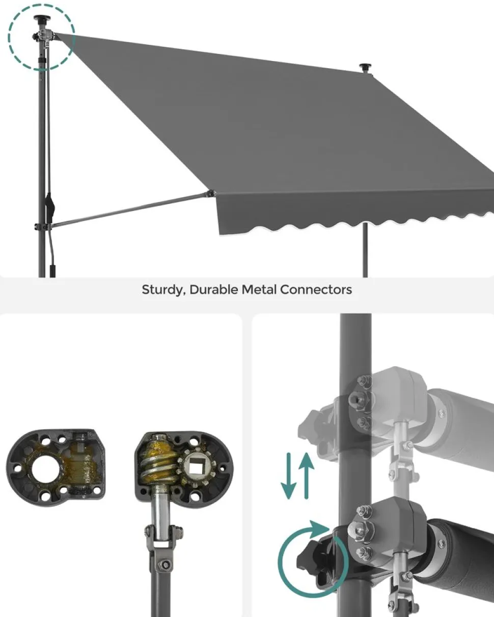 Créez de l’ombre sur votre balcon en 2 étapes ! Vissez la partie du haut du mât à la partie du bas, tournez facilement la manivelle pour l’ouvrir, et voilà ! Cette ombrelle est prête à vous offrir une oasis de fraîcheur sur votre balcon