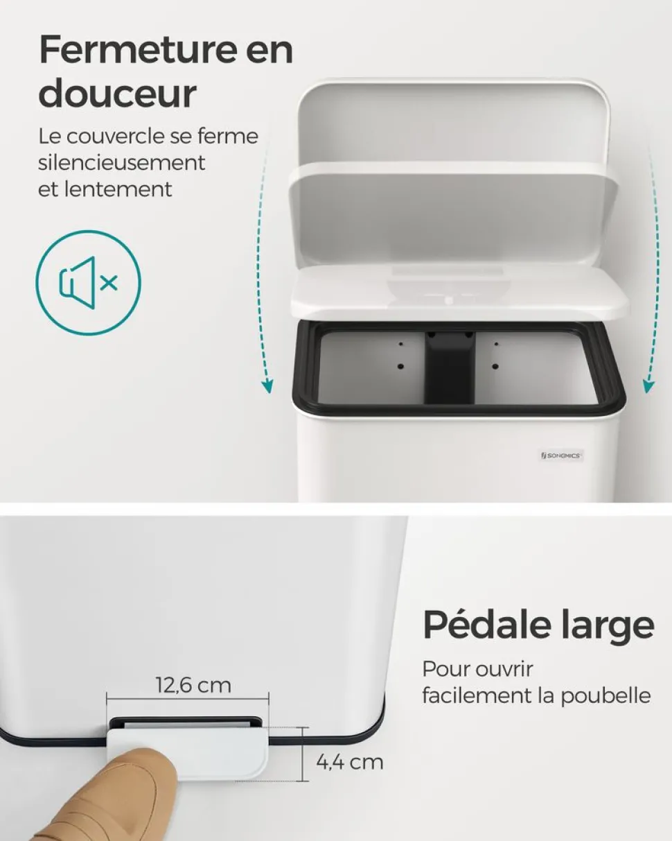 Flash Sale SONGMICS Poubelle de cuisine 40L blanc