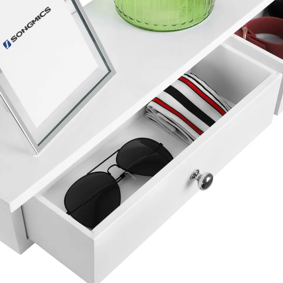 Ce modèle d’armoire à bijoux de Songmics regroupe à la fois la psyché, l’armoire et l’étagère en une seule unité. Pivotant à 360°, cette armoire blanche offre un look élégant, qui lui permet de s’intégrer facilement dans votre chambre. Les étagères au dos de l’armoire optimisent l’espace. L’espace intérieur de l’armoire est bien compartimenté, donc tous vos objets trouveront leur place. Avec l’armoire à bijoux de Songmics, dites désormais au revoir au désordre sur votre coiffeuse!