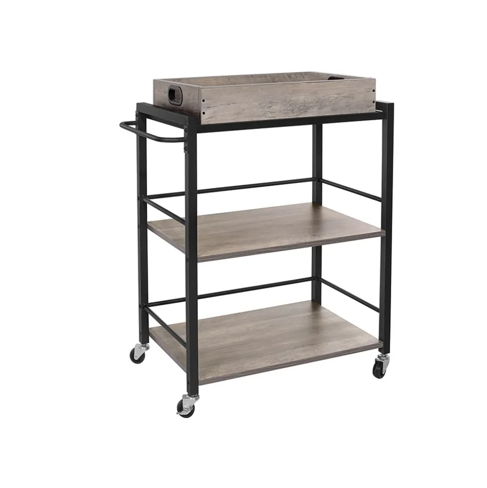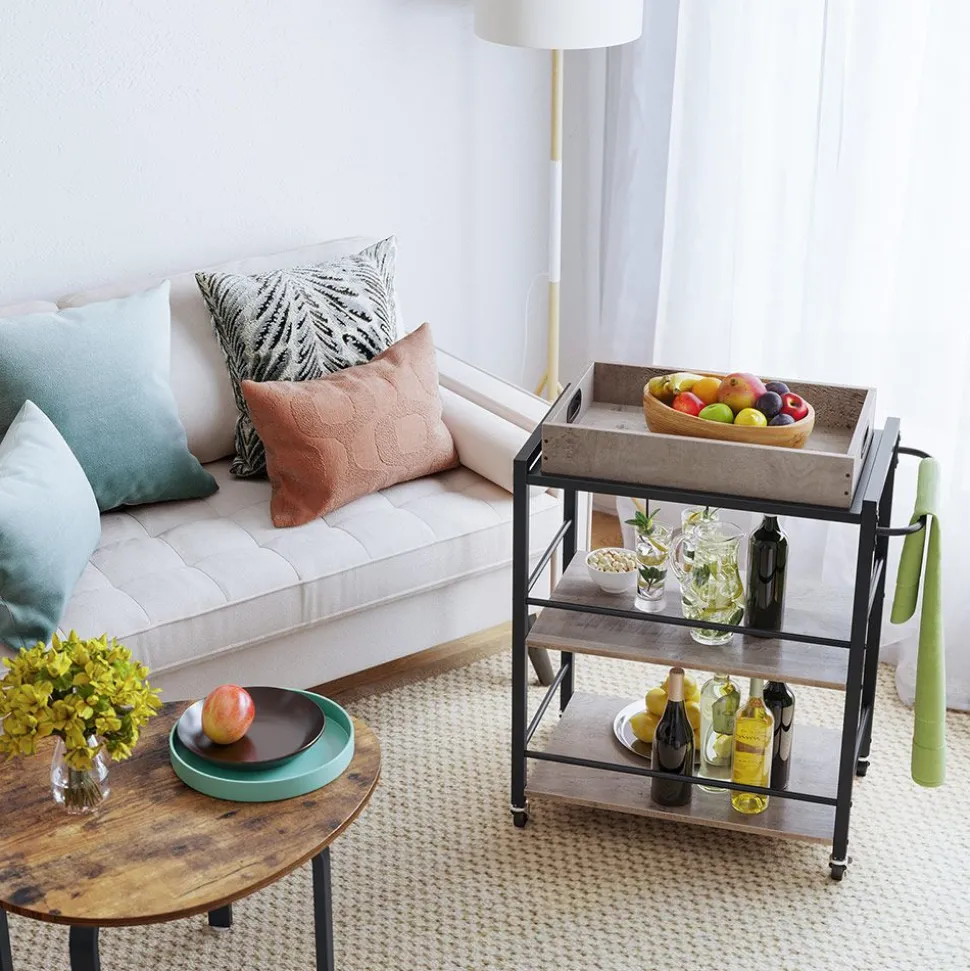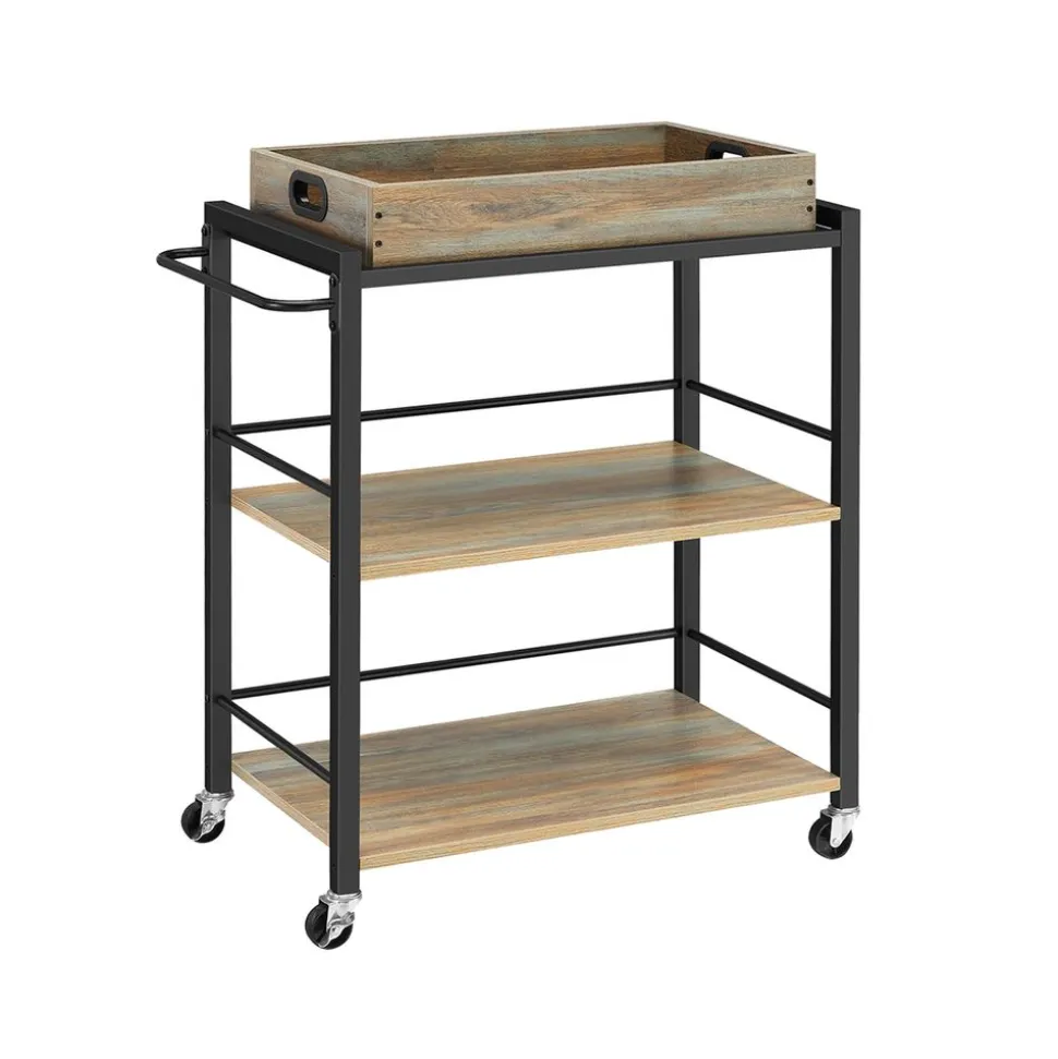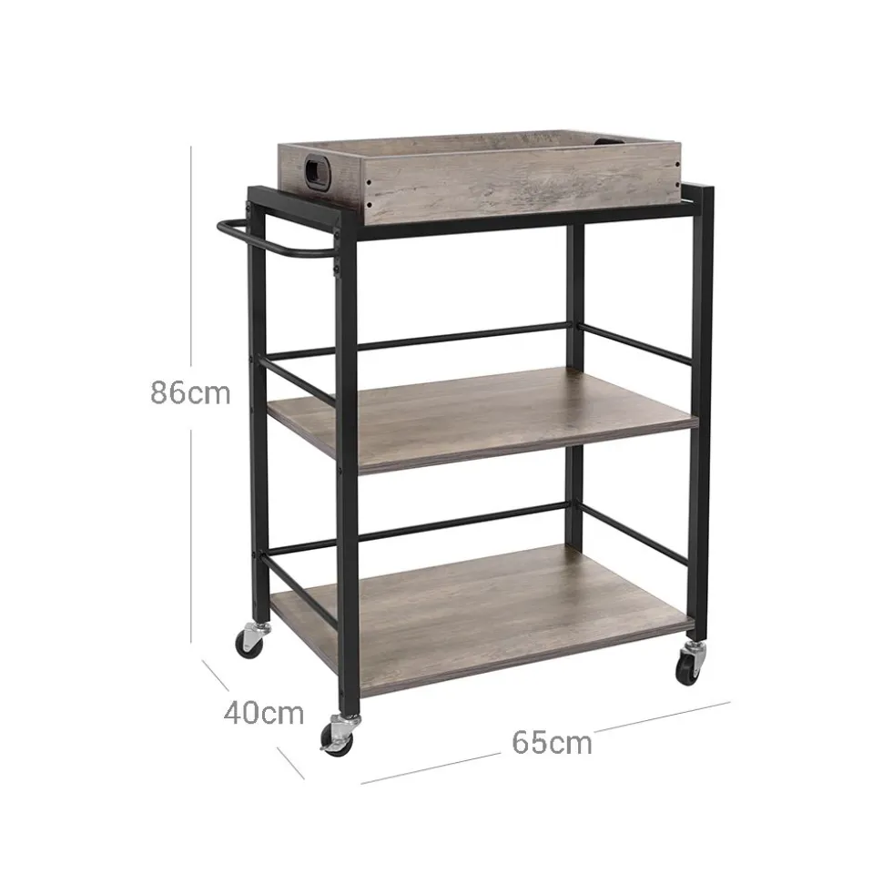 UN SERVICE 20/20 : Si vous aimez surprendre vos proches avec vos plats délicieux mais que votre plan de travail est souvent trop petit, ce chariot de cuisine avec un mélange de grège et de noir élégant vous aide à renforcer votre talent culinaire