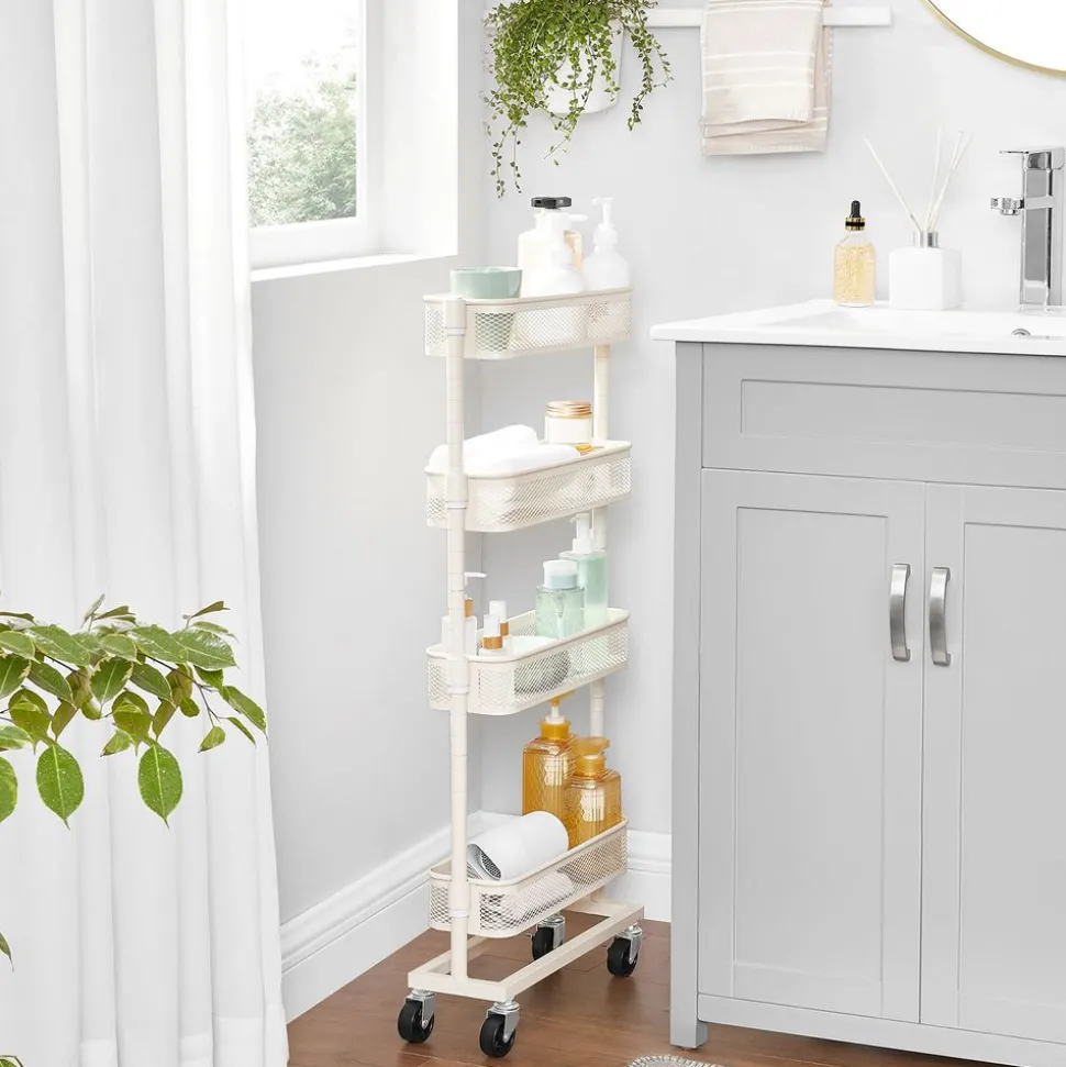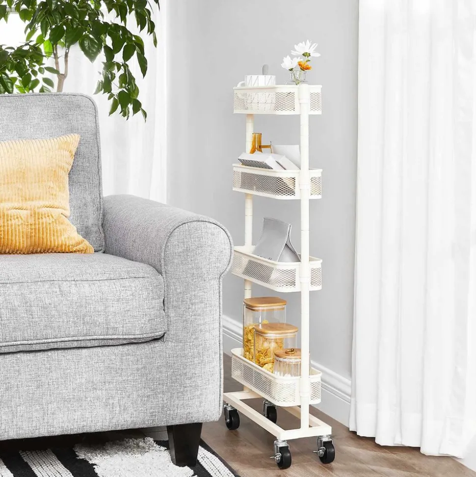 Universel : Cette étagère à roulettes peut être utilisée dans la cuisine, le salon, le bureau et la salle de bain. Avec des paniers réglables en hauteur, elle est parfaite pour ranger des petites pots d’épices ainsi que des grandes bouteilles de shampoing