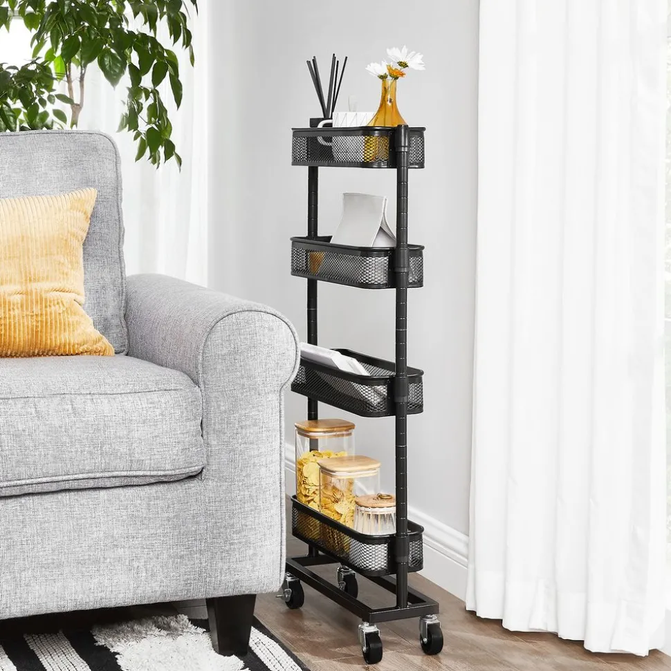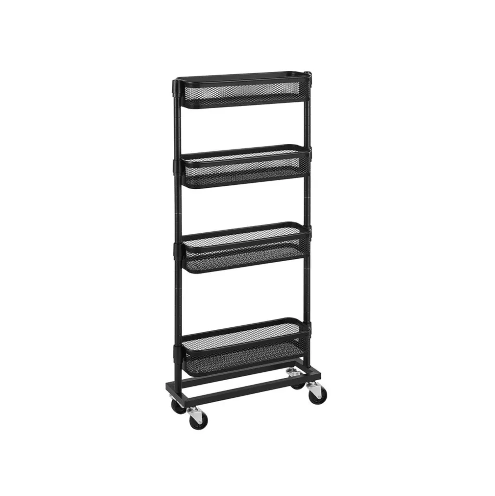 Tout pour vous : Ce chariot a beaucoup de choses à offrir, il suffit de regarder ses tubes d’acier soigneusement conçus, ses 4 paniers en treillis avec une charge statique allant jusqu’à 4 kg/niveau, ses roues robustes et son espace de rangement