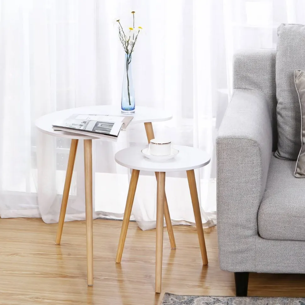 Best Sale SONGMICS Table d’appoint ronde à 2 niveaux blanc marbré et noir Blanc Marbré + Noir