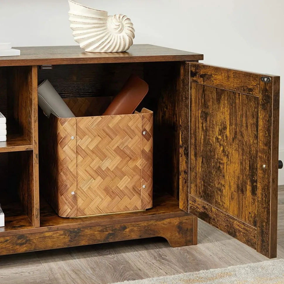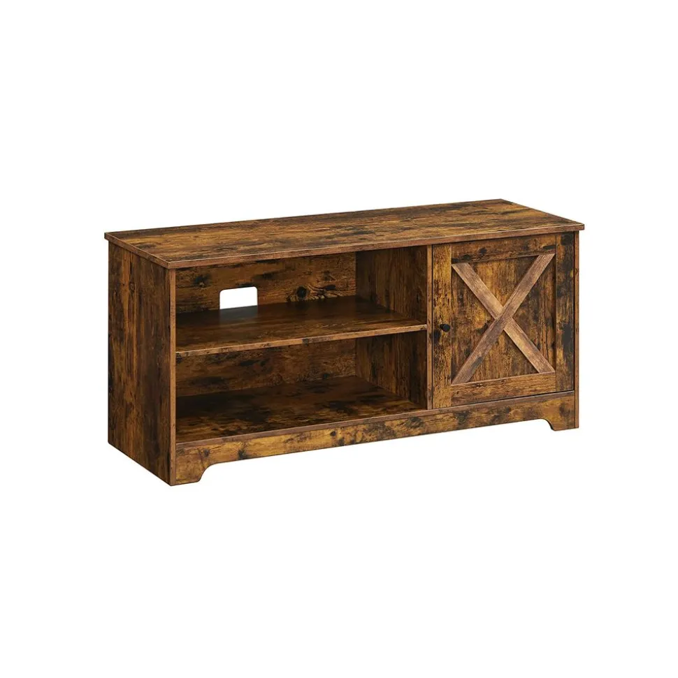 La vedette : Avec une porte façon grange qui apporte une touche campagnarde ainsi qu’une finition brun rustique qui crée une ambiance chaleureuse, ce magnifique support télé est un show à lui même