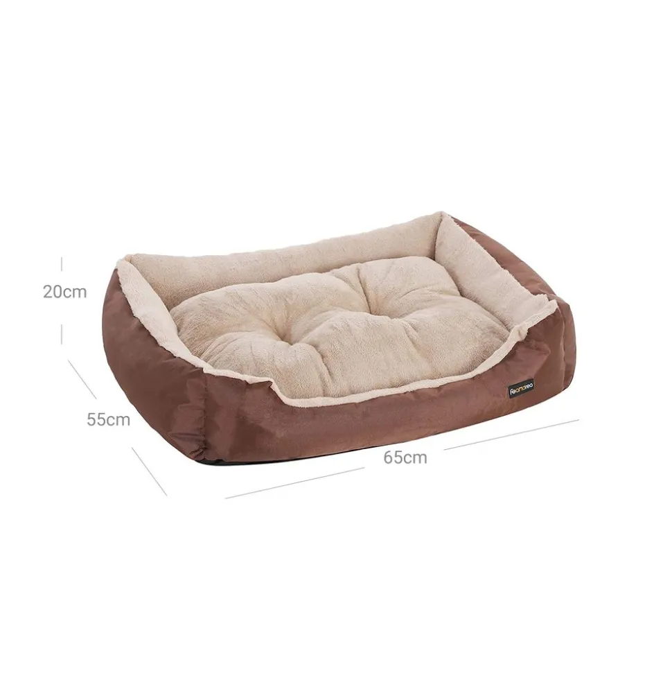 COUSSIN RÉVERSIBLE: 2 différents tissus. Un tissu style ours en peluche est douillet et agréable au toucher. Un tissu en oxford marron. Votre chien peut choisir en fonction de sa préférence