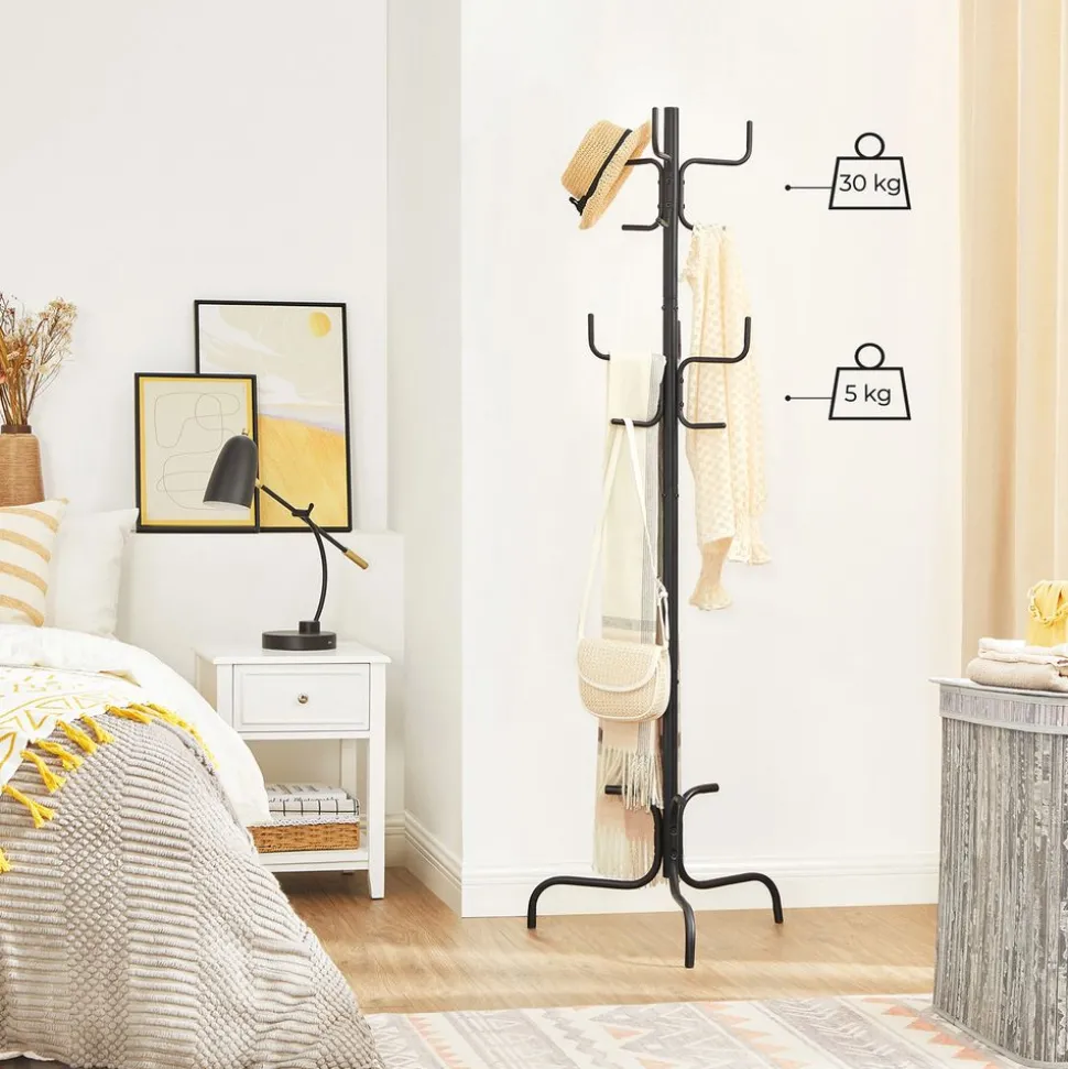 Plus d’espace de rangement : Avec un tel portemanteau, vous aurez plus de place de rangement sans prendre plus de place pour autant. Fabriqué en acier, il supporte jusqu’à 30 kg. Il vous servira pour des années à venir.