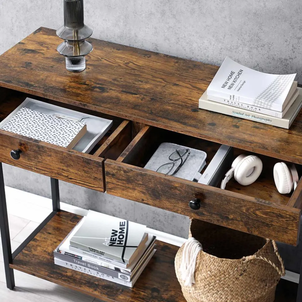PLUS DE TIROIRS, MOINS DE DÉSORDRE : C’est jamais facile de ranger ses clés, son courrier et ses porte-monnaies. 2 tiroirs supplémentaires sous le dessus de table vous offre de la place pour cacher le désordre causé par les petits objets