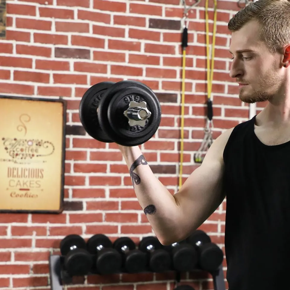 DUR COMME UNE PIERRE, FORME ANGULAIRE: Les haltères, fabriqués en fonte, sont uniformes et symétriques. Grâce à leur forme angulaire, ils ne peuvent pas rouler
