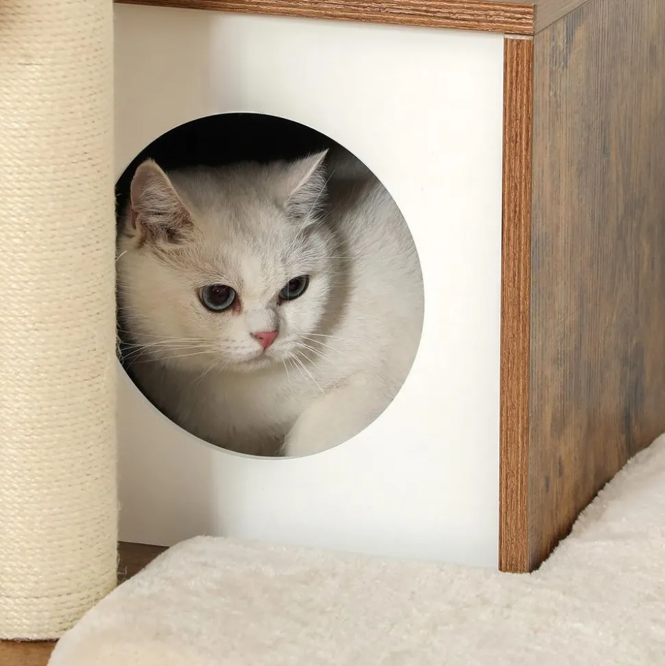 OÙ EST SON ENDROIT PRÉFÉRÉ ? Devant la fenêtre du salon, dans un coin ou dans votre chambre ? Placez cet arbre à chat là où il fera plaisir à votre chat. Peu importe où, les panneaux rustiques embelliront la pièce
