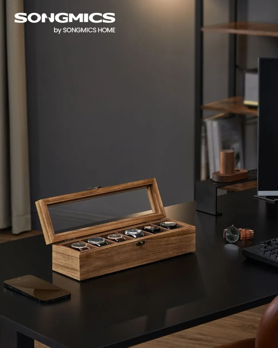 New SONGMICS Boîte à montres 12 compartiments couleur noisette