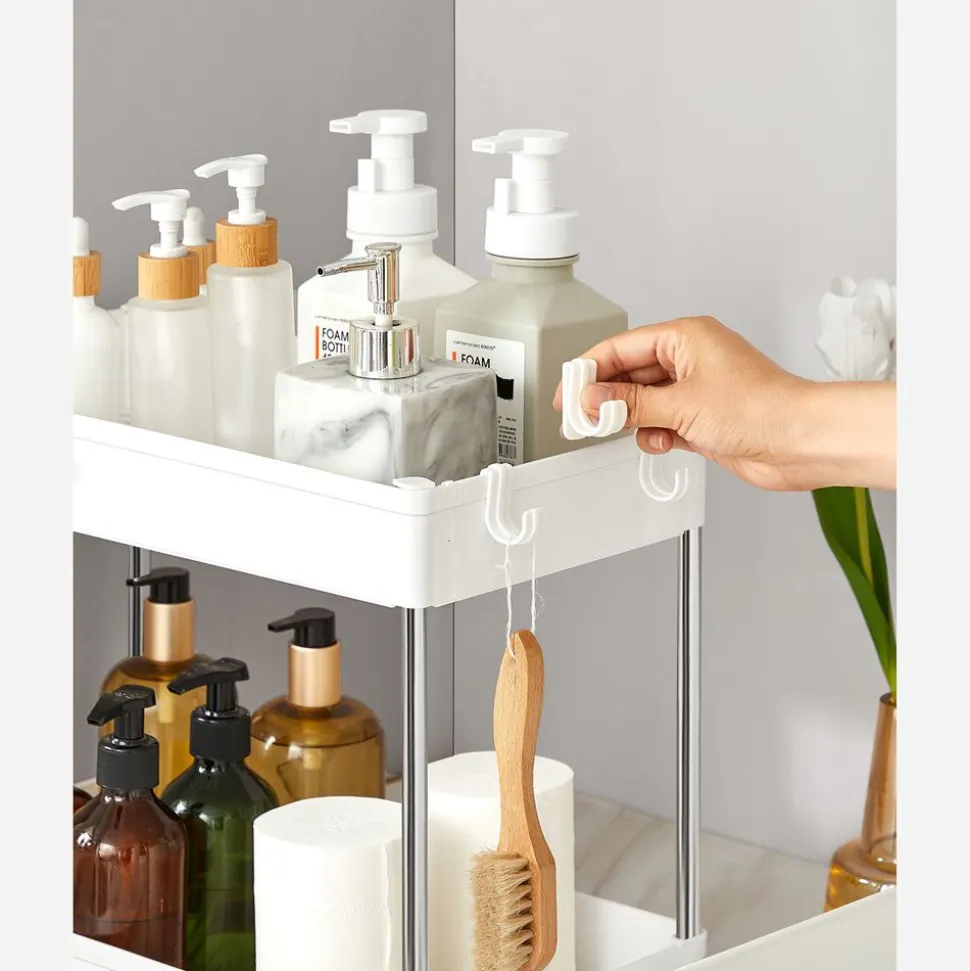 - A côté de votre plan de travail : Mettez des épices, des fines herbes, de l’huile d’olive et d’autres ingrédients sur ce chariot de cuisine et faites-le glisser à côté de votre plan de travail pour préparer un repas copieux pour votre famille !À côté de votre baignoire : Remplissez ce chariot de salle de bain pratique avec du shampoing, du gel douche, des serviettes et un gant de toilette, faites-le rouler à côté de votre baignoire et sautez dans un bain moussant chaud !A côté de votre machine à laver : Rangez des brosses, de la lessive et de l’assouplissant sur ce chariot mobile et déplacez-le dans la buanderie. Montrez fièrement à vos invités votre buanderie que vous ne leur aviez jamais montrée auparavant !