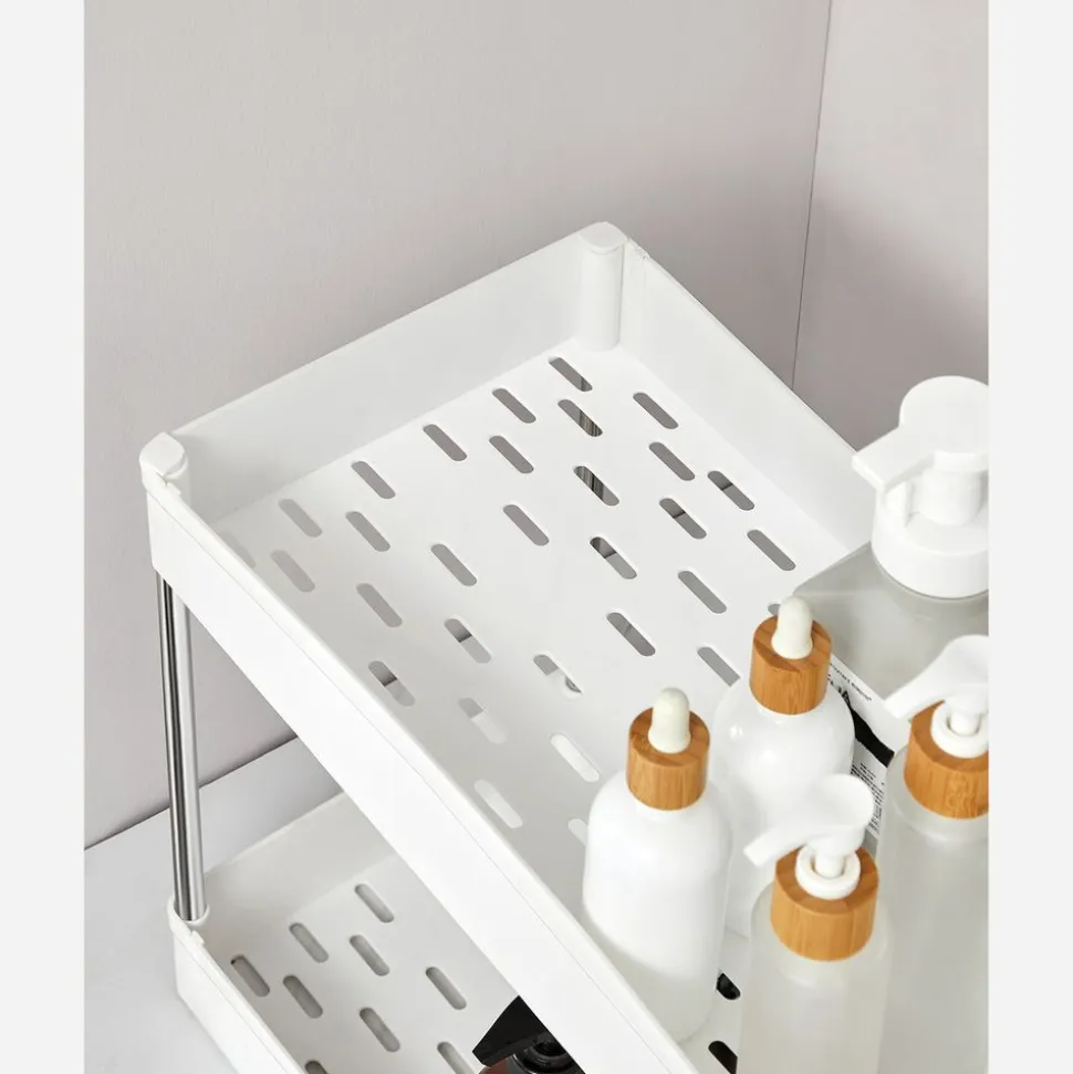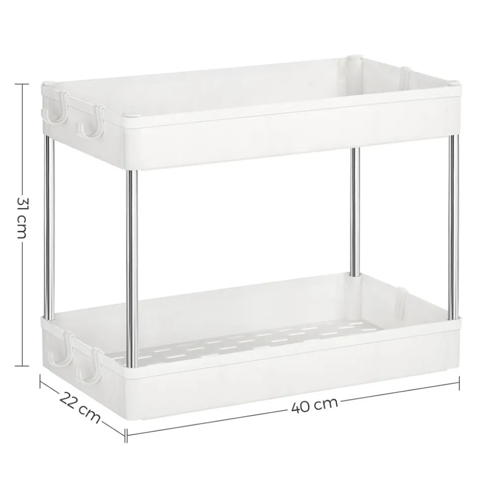 Grande charge ? Oui ! Nourriture, boisson, shampoing, produits d’entretien… il y a beaucoup de place sur ces 3 niveaux. Soutenu par des barres en acier inoxydable, chaque niveau supporte jusqu’à 5 kg