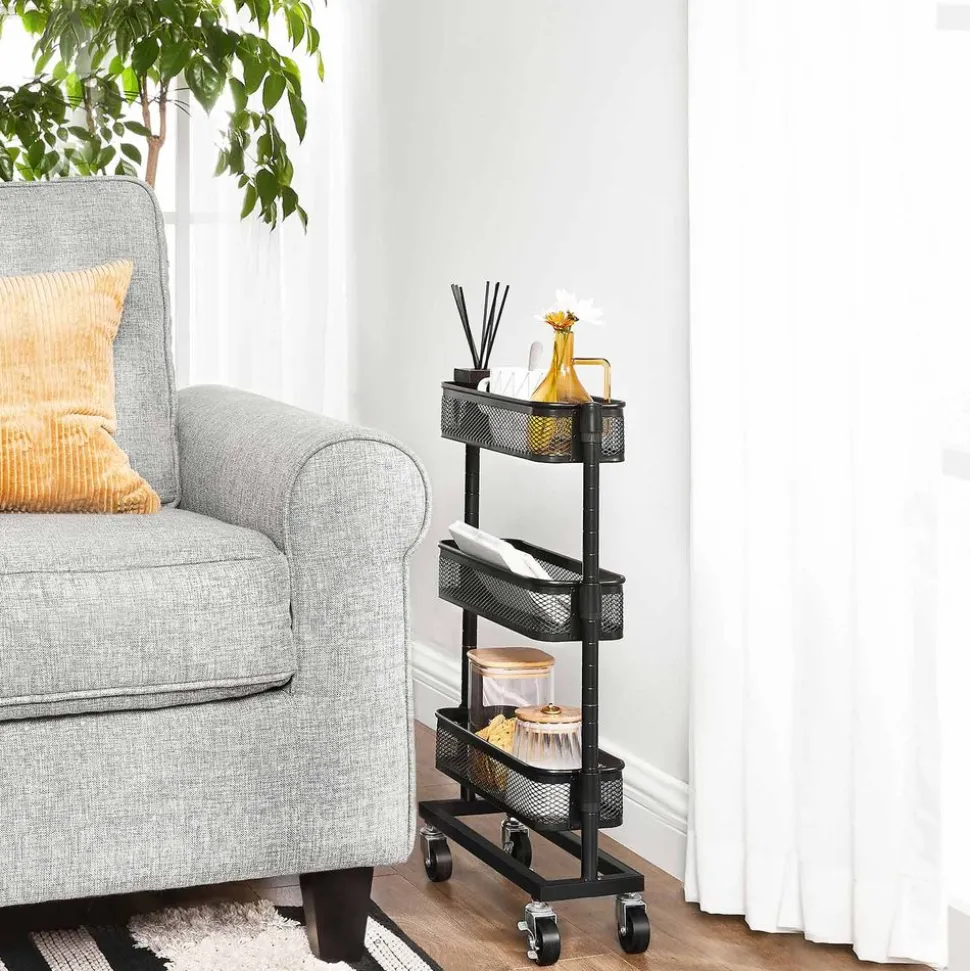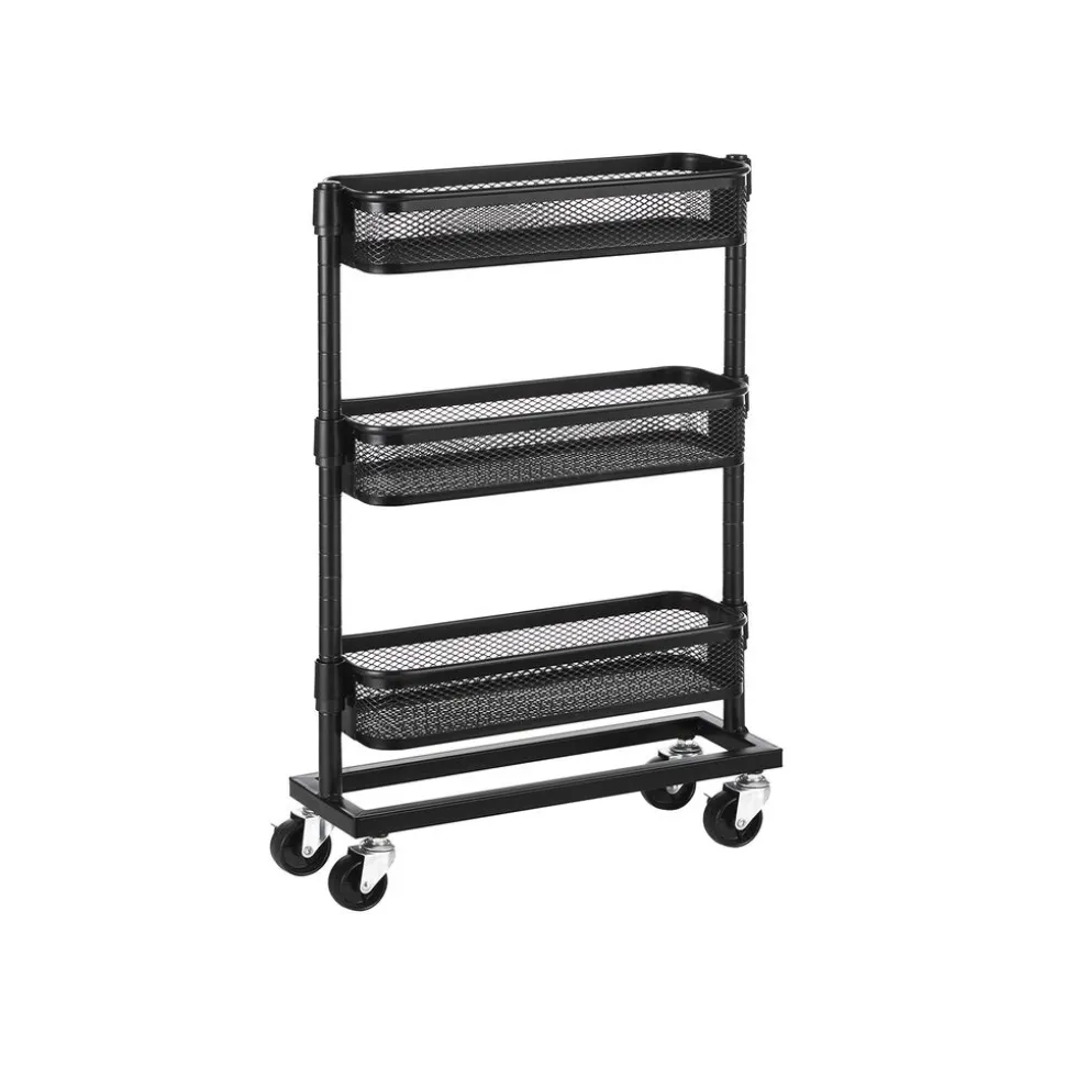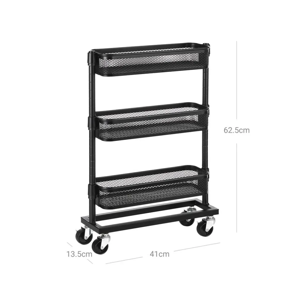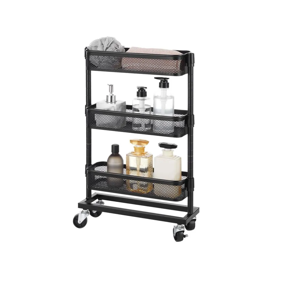 Tout pour vous : Ce chariot a beaucoup de choses à offrir, il suffit de regarder ses tubes d’acier soigneusement conçus, ses 3 paniers en treillis avec une charge statique allant jusqu’à 4 kg/niveau, ses roues robustes et son espace de rangement