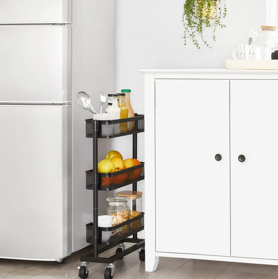 Seulement 13,5 cm de large : L’atout de ce chariot de rangement est ses dimensions réduites. Cela lui permet de se glisser dans des petits espaces ou des petits coins, tout en offrant beaucoup d’espace de rangement