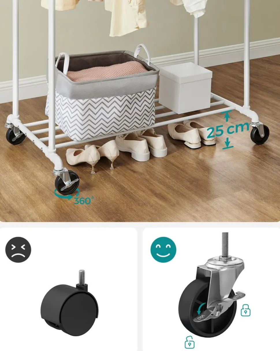 Beaucoup d’espace de rangement : Les 2 tringles offrent de la place pour suspendre vos vêtements, avec un distance de 44 cm entre les barres, les vêtements sont facilement accessibles Accrochez vos écharpes et vos cravates sur les côtés et posez vos chaussures sur l’étagère du bas