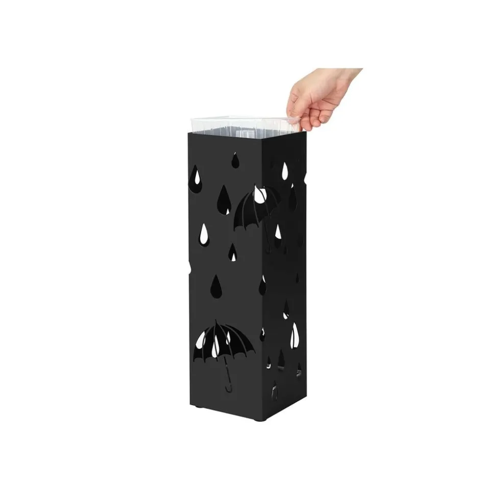 PIÈCES SPÉCIALES : Récipient en plastique dur incluse pour recueillir les gouttes d’eau, protecteur souple antidérapant pour protéger votre sol,crochets fournis pour suspendre les parapluies pliables