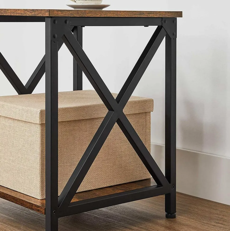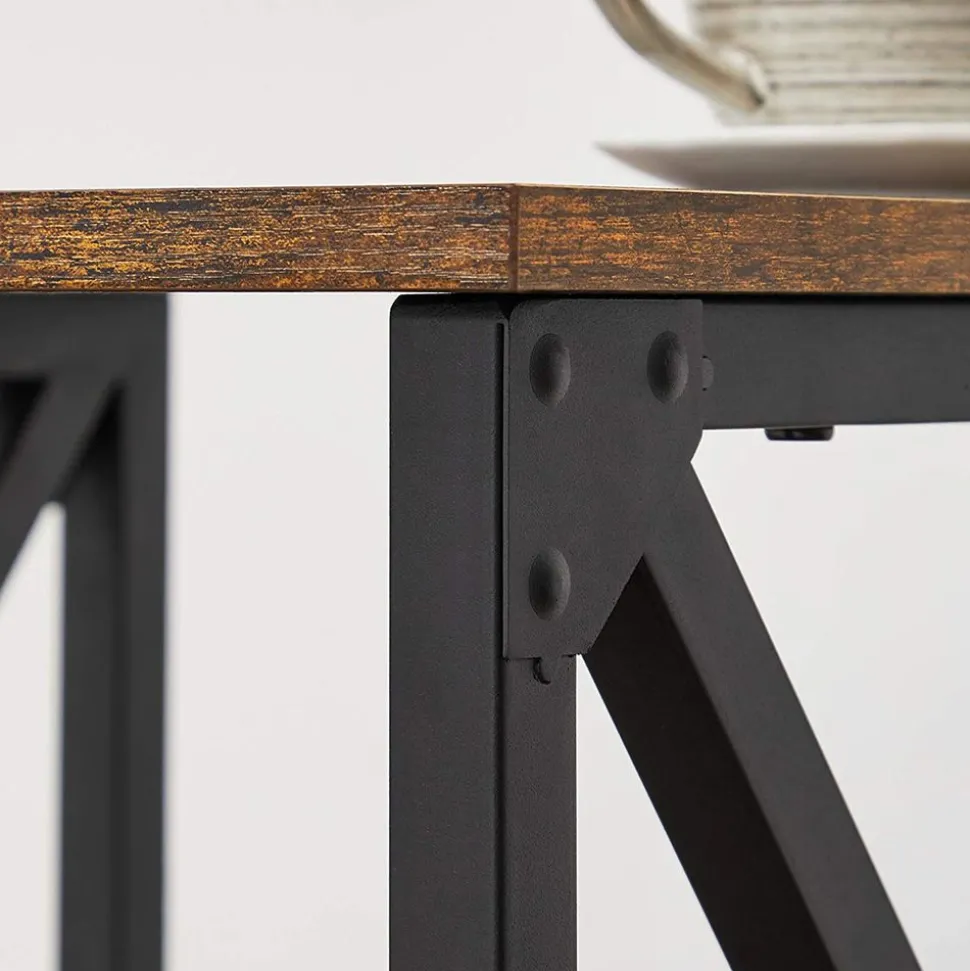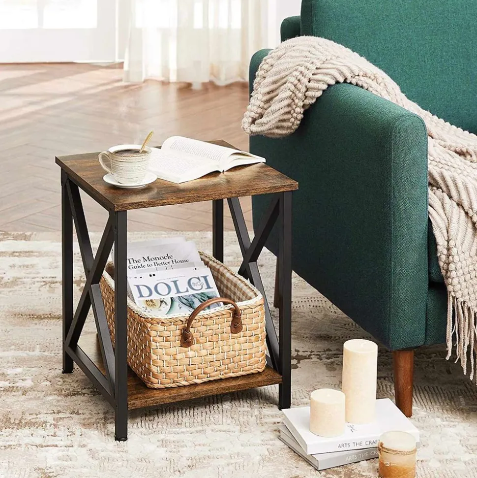 Mélangez style indus et campagnard… pour obtenir une table d’appoint chic et confortable. Avec des barres en X et des tons marron rustique et noir, elle va faire parler d’elle-même !