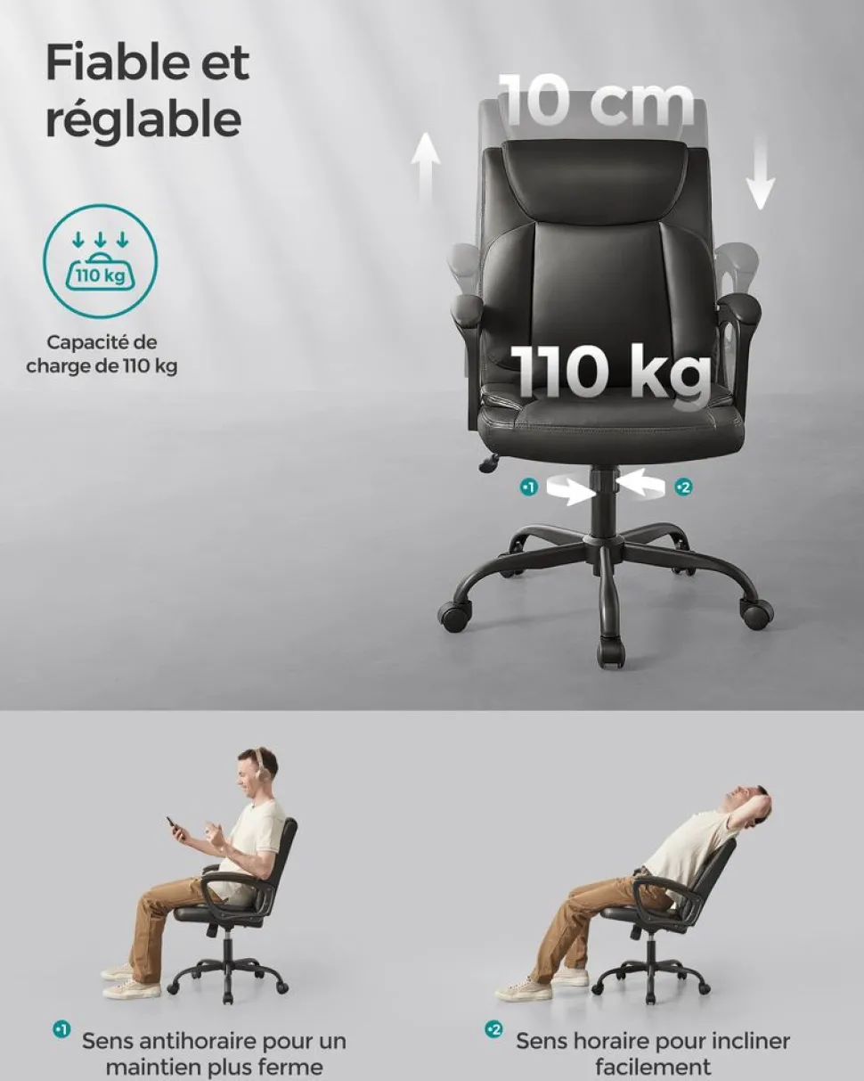 Online SONGMICS Chaise de bureau capacité de charge 150 kg noir d’encre