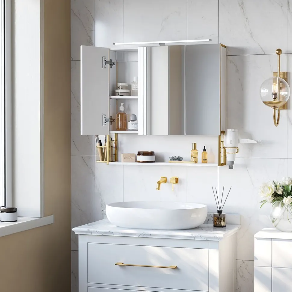 Partie supérieure transparente en verre acrylique – un aspect particulièrement chic et élégant grâce à une combinaison de verre acrylique et de plastique ABS ; ainsi vous voyez clairement votre collection de cosmétiques par le haut.
