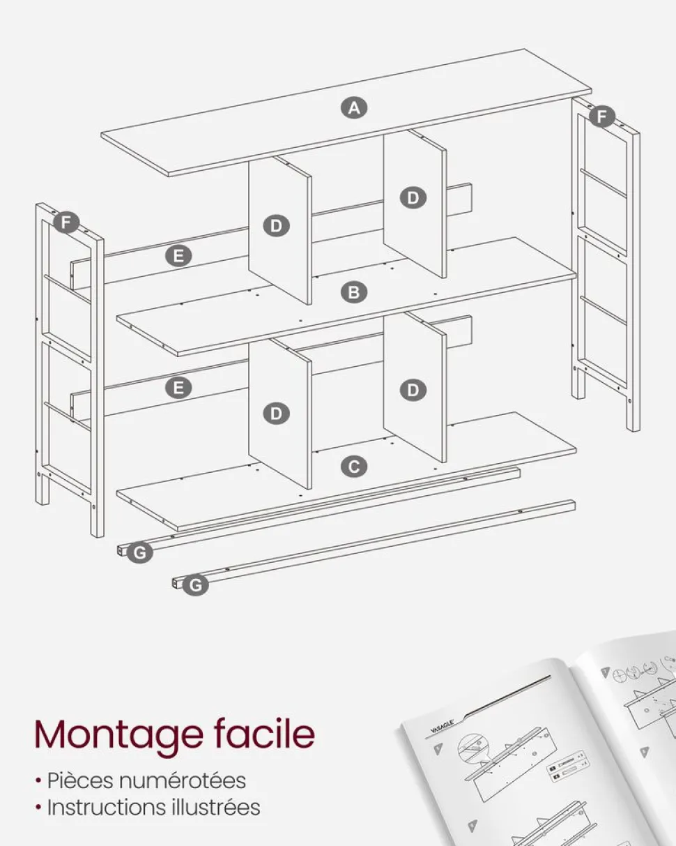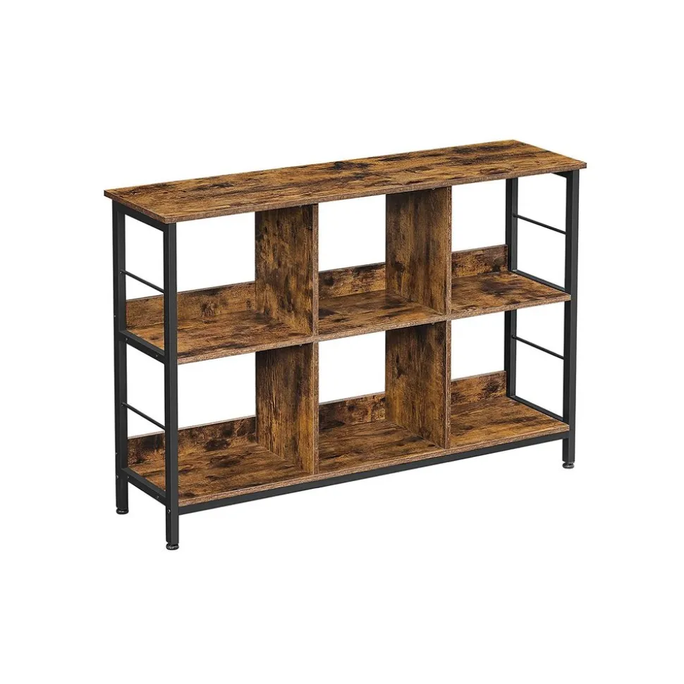 [Industriel rustique] L’élégant mélange de marron camel et de noir crée une ambiance vintage et industrielle, faisant de cette bibliothèque le rôle principal de votre intérieur[Du rangement] Cette bibliothèque à 6 cubes répond à tous vos besoins. Elle peut être utilisée dans votre salon pour poser des décorations, dans votre bureau pour ranger des livres ou dans votre cuisine pour stocker des bouteilles et des bocaux[Stable, esprit tranquille] Les bords rehaussés à l’arrière et les barres en acier sur les côtés assurent plus de stabilité. Grâce aux pieds réglables, tout est bien équilibré même sur un sol légèrement irrégulier. Zéro problème de stabilité ![Barres latérales pratiques] Les barres en acier sur les côtés empêchent vos objets de tomber. En plus, vous pouvez y accrocher des casques, des chapeaux, des écharpes et autres objets, tout reste à portée de main[Assemblage, sans casse-tête] Peur de l’assemblage ? On vous aide ! Cette étagère est livrée avec des instructions illustrées et des pièces numérotées, tout est fourni pour assembler cette étagère de rangement rapidement