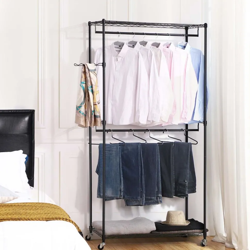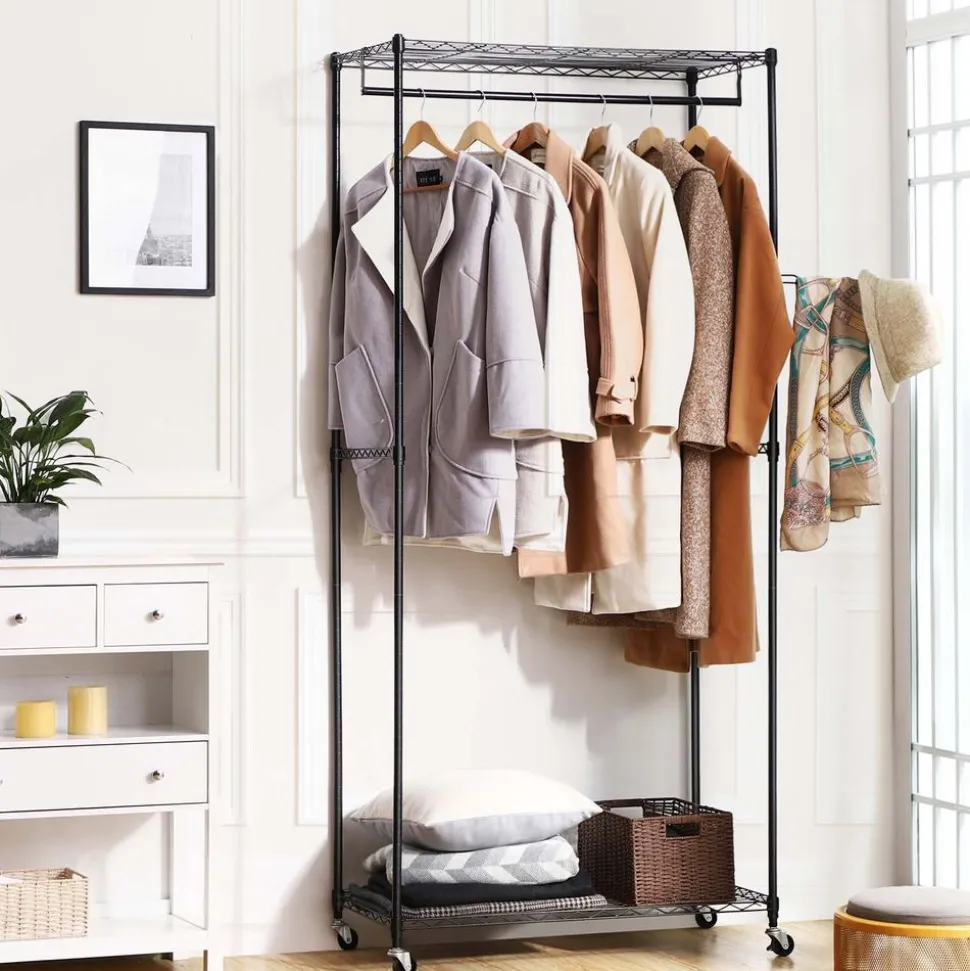 Bonne finition – Tubes noirs en fer pulvérisés en poudre, solides, imperméables et anti-corrosifs, ce qui permet d’accrocher les vêtements humides et assure une maintenance facile