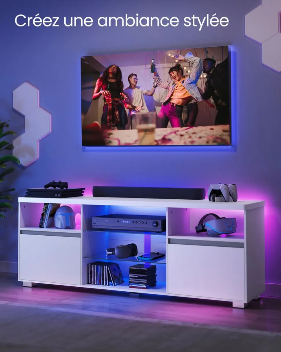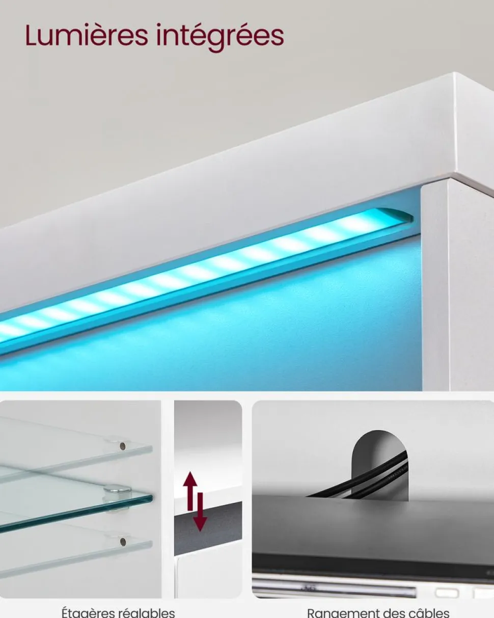 Structure solide : Grâce aux rainures, le panneau arrière s’y glisse facilement et peut être fixé solidement. Ceci augmente considérablement la stabilité. En plus, un kit anti-basculement est fourni !