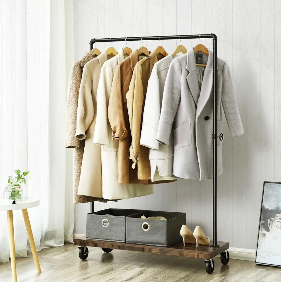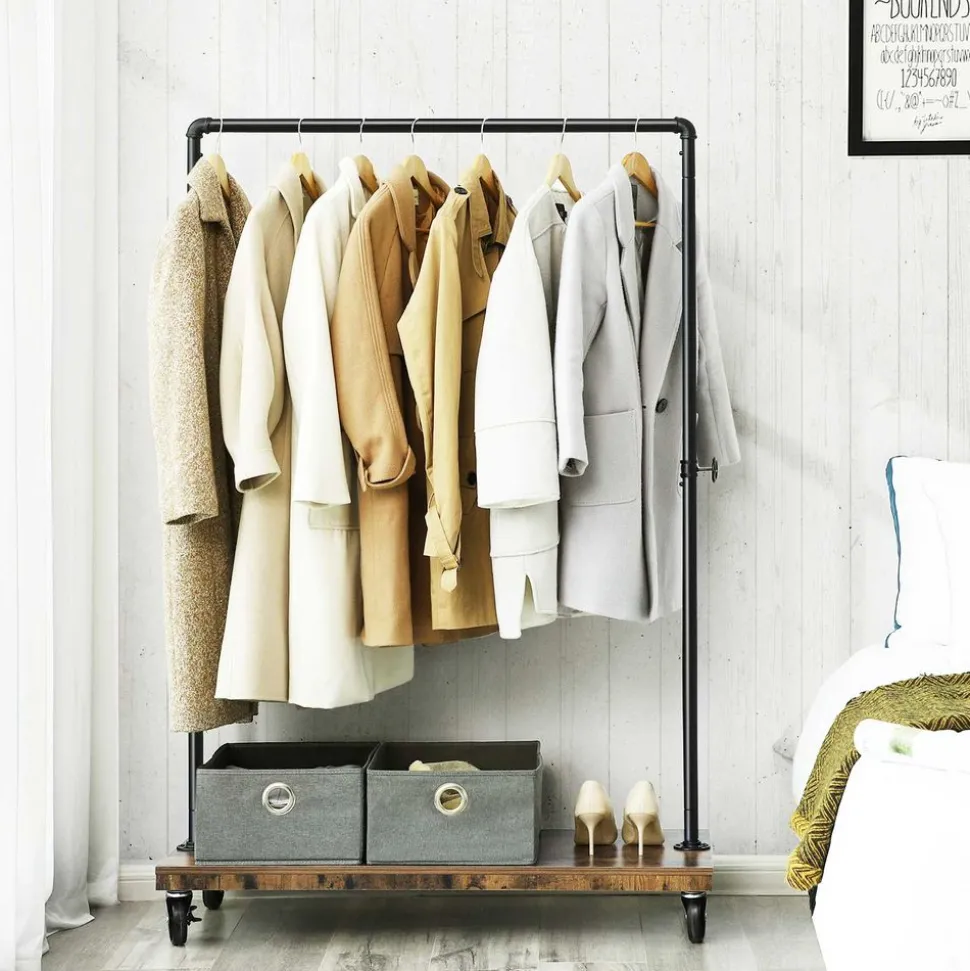 METTEZ-LE EN VALEUR : Invitez ce portant doté d’une barre au design industriel et d’une étagère rustique chez vous afin d’ illuminer votre intérieur et d’y apporter un rangement supplémentaire.