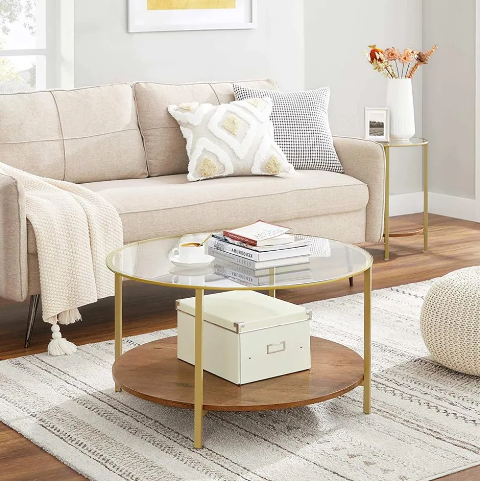Pour un soutien fiable : Une table, c’est bien. Une belle table basse avec un support solide, c’est mieux. Le cadre en acier traité par poudrage, les panneaux d’aggloméré et le dessus en verre trempé permettent à cette table basse ronde de tenir solidement