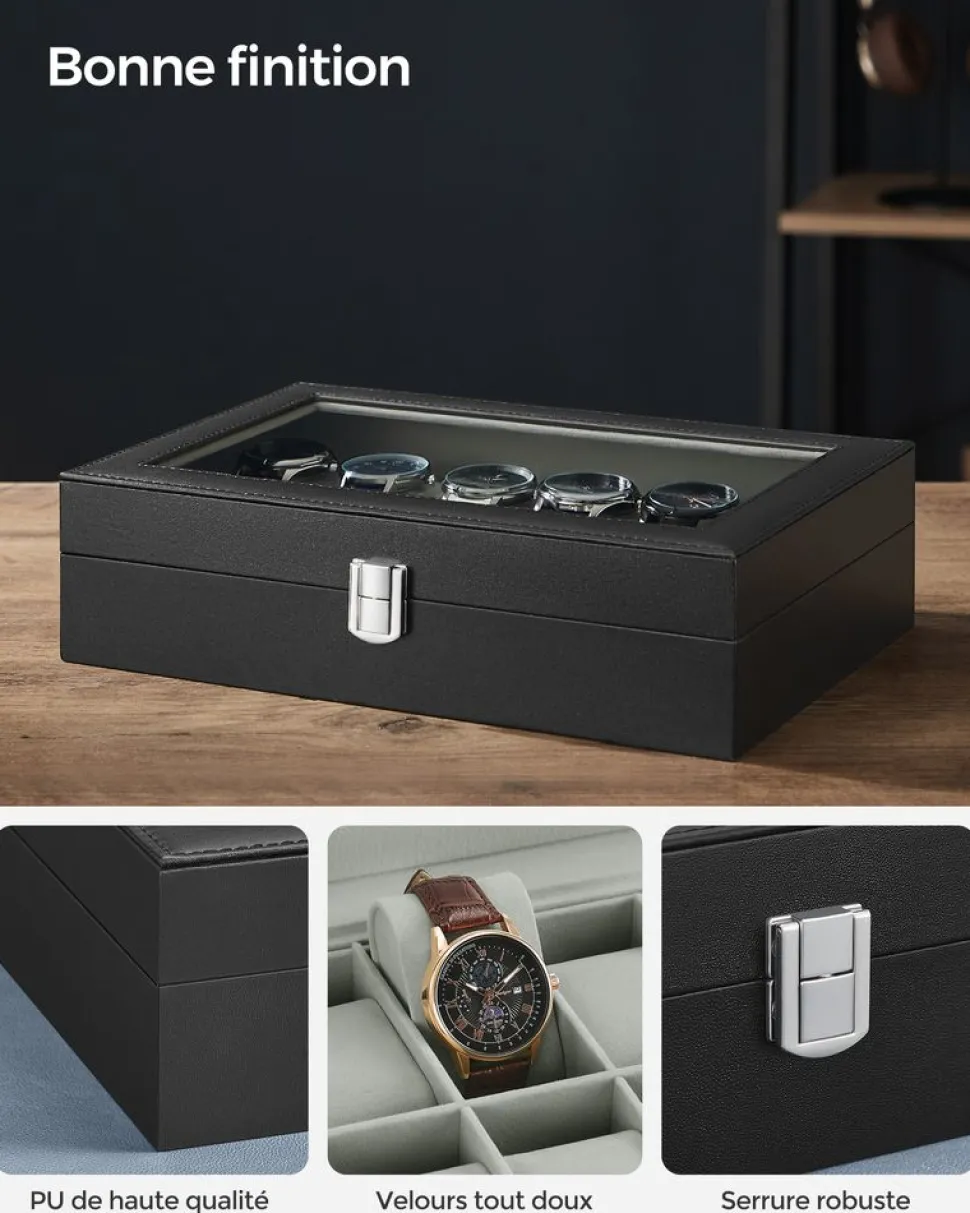 Nous vous proposons une grande diversité de boîtes à montres de différentes tailles et couleurs. Cliquez sur“boîtes à montres ”SONGMICS pour en savoir plus. -