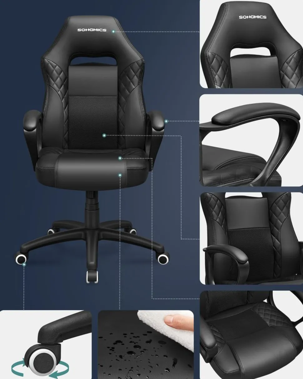 Siège confortable – L’assise rembourrée en éponge de haute densité (largeur 51 cm, profondeur 53 cm) est confortable est résistante à la déformation; le dossier s’adapte parfaitement à la courbure lombaire (hauteur 65 cm), le support lombaire vous permet de réduire la tension du dos au maximum, le revêtement est en tissu mesh respirent