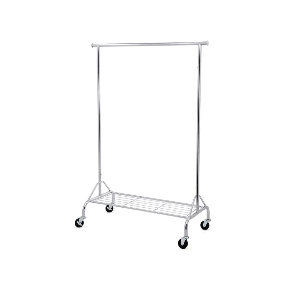 Roulettes de haute gamme – Equipé de 4 roulettes de haute qualité, ce portant à vêtements se déplace facilement selon le besoin même s’il est chargé de 75kg. Il y a 2 roulettes avec freins pour fixer la penderie et éviter les déplacements non indispensables