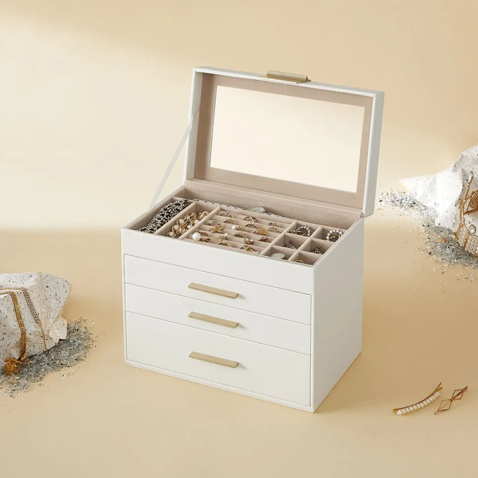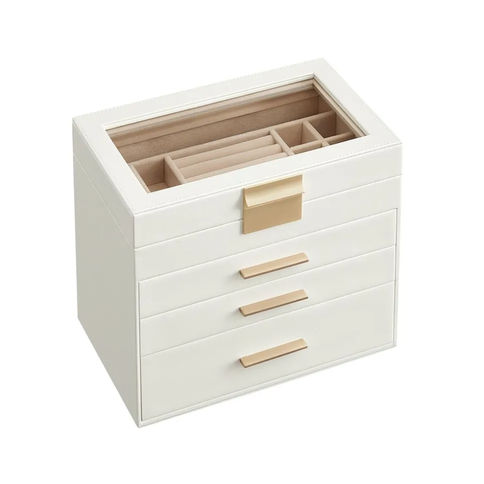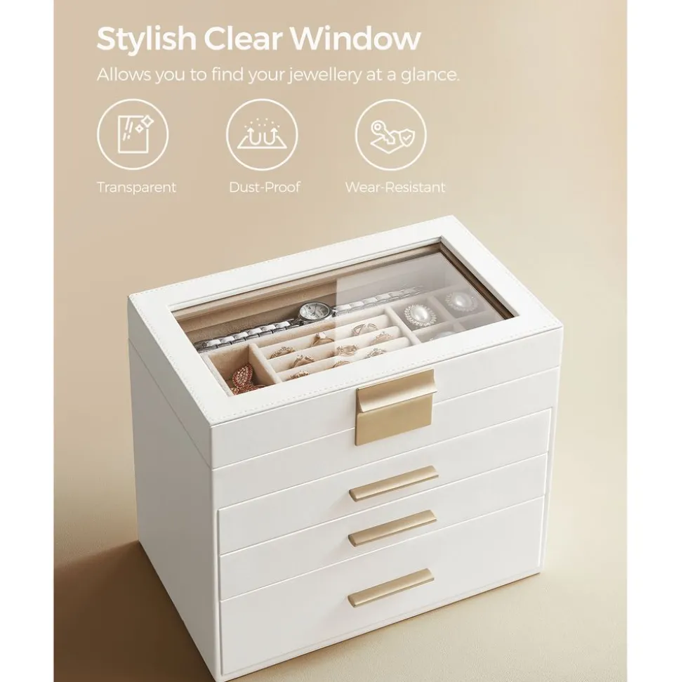 Couvercle transparent : Sous la surface en verre transparent, tous vos bijoux préférés sont visibles. Ils sont bien présentés et protégés de la poussière