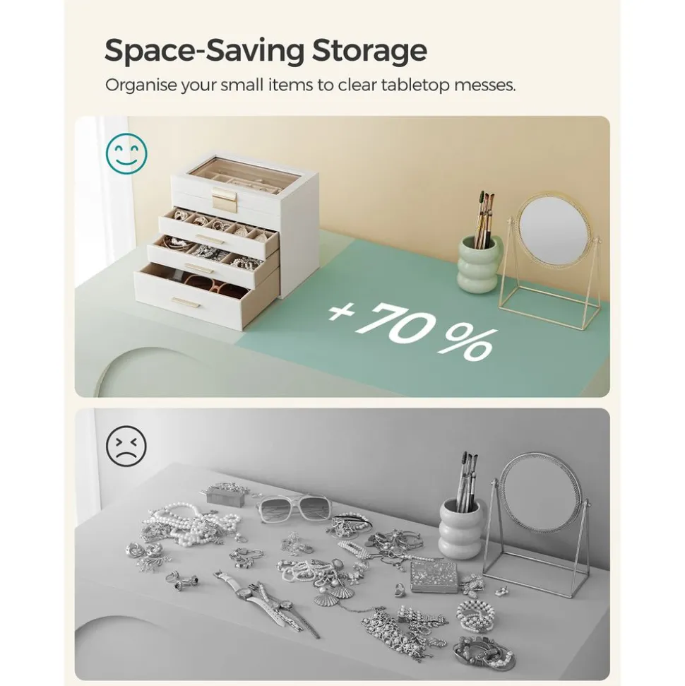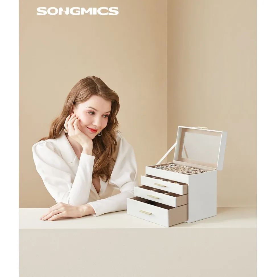 Les boîtes à bijoux élégantes et classiques de la série rangement bijoux de SONGMICS permettent de bien ranger et protéger tous vos bijoux étincelants. Chaque fois que vous ouvrez votre boîte à bijoux, c’est comme si vous ouvriez un coffre au trésor. Offrez-vous une boîte à bijoux de SONGMICS qui symbolise l’amour de soi, la confiance en soi et la recherche d’une vie meilleure.