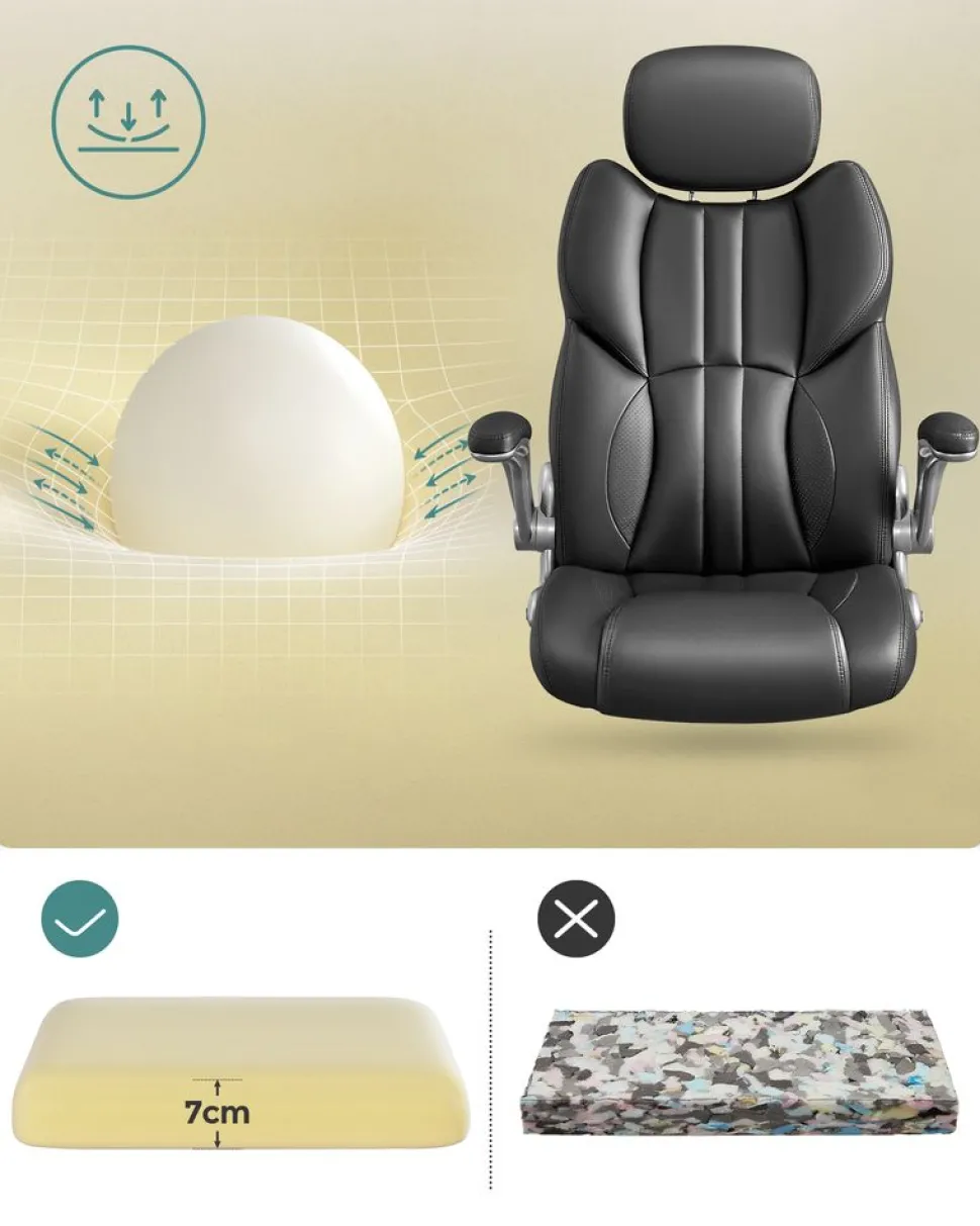 Le dossier professionnel généreusement rembourré soutient bien votre cou et votre tête pour prévenir les douleurs et les crampes.