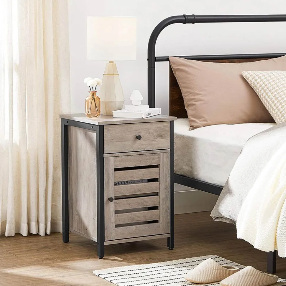 Plein de charme : Dotée d’une surface marron rustique, d’un cadre en métal noir mat et d’une porte persienne, cette charmante table d’appoint attire tous les regards. Pourquoi pas y ajouter un bouquet de fleurs ou des décorations pour créer un coin original ?