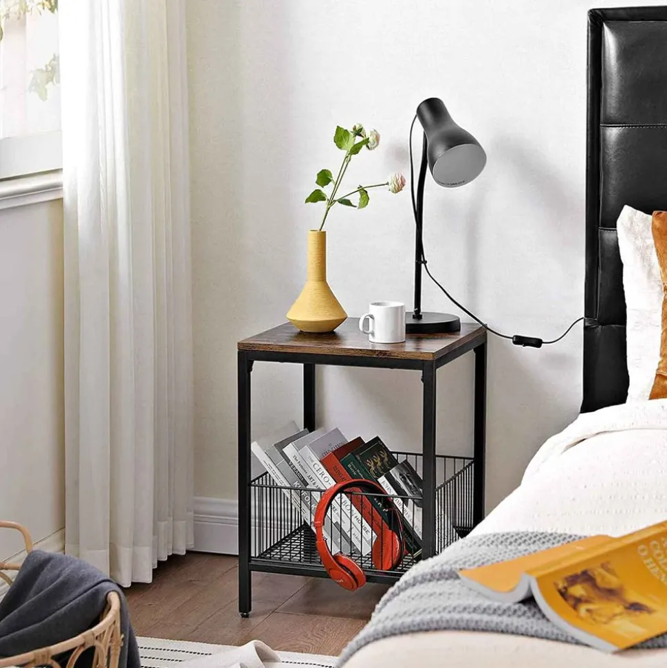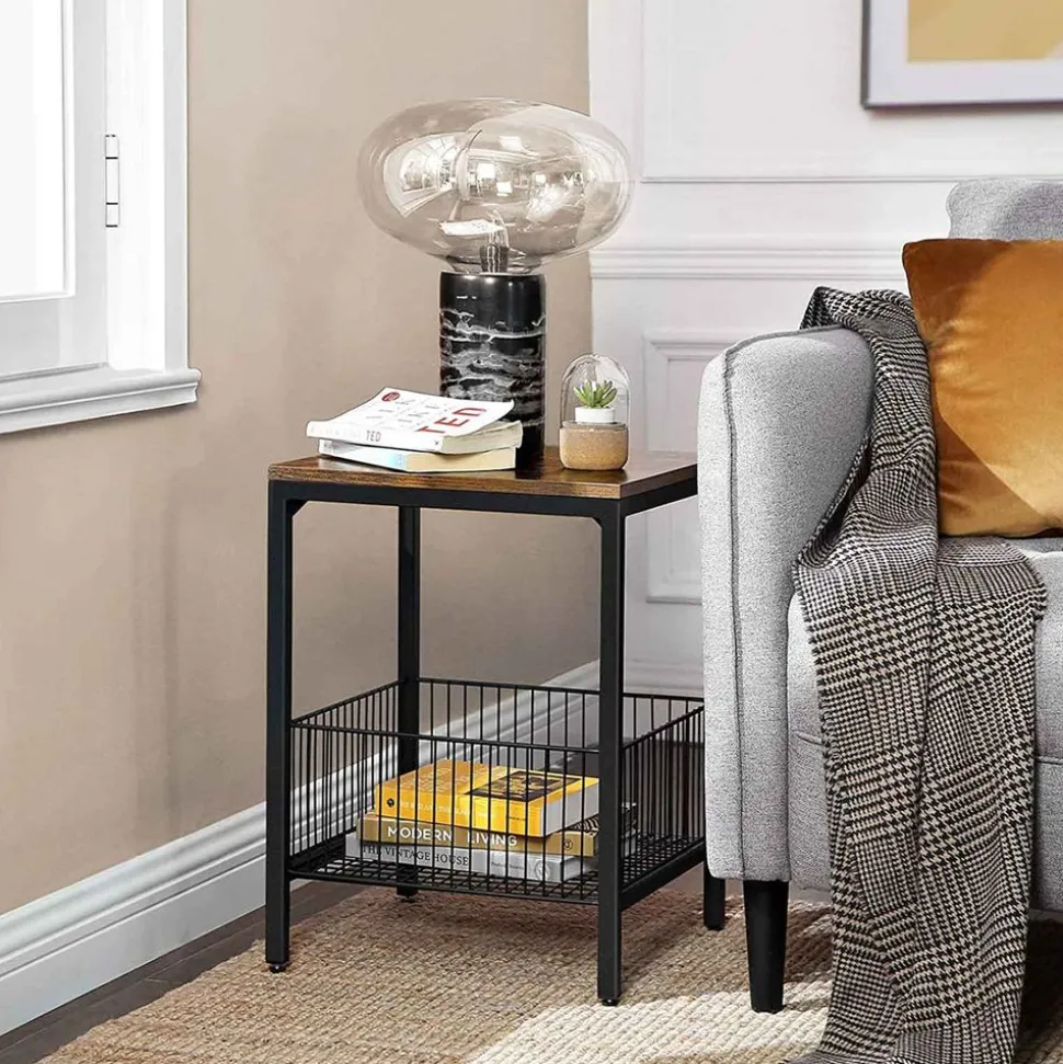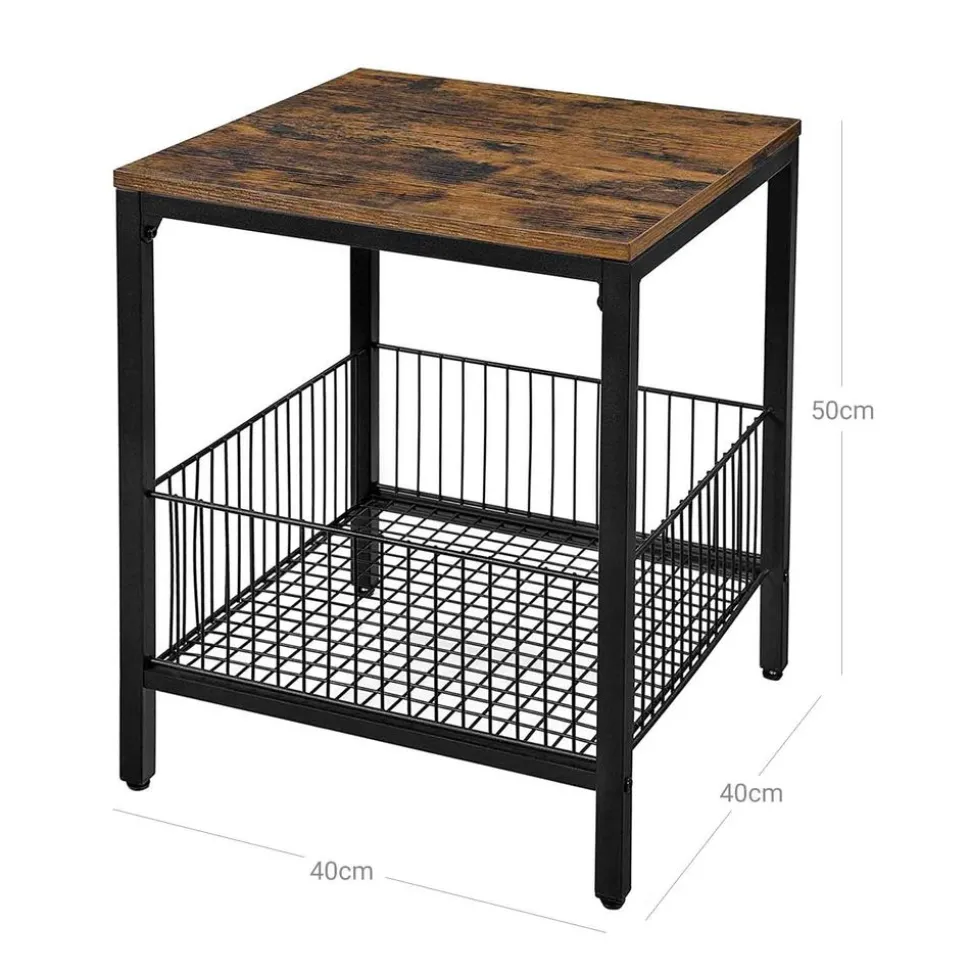 LA STAR DE VOTRE MAISON : Cette table d’appoint de 40 x 40 x 55 cm n’est pas la plus grande star mais grâce à son cadre en acier noir mat, à son panier en fil métallique qui attire l’attention et à son dessus de table brun rustique, elle est la vedette secrète de votre chambre ou de votre salon