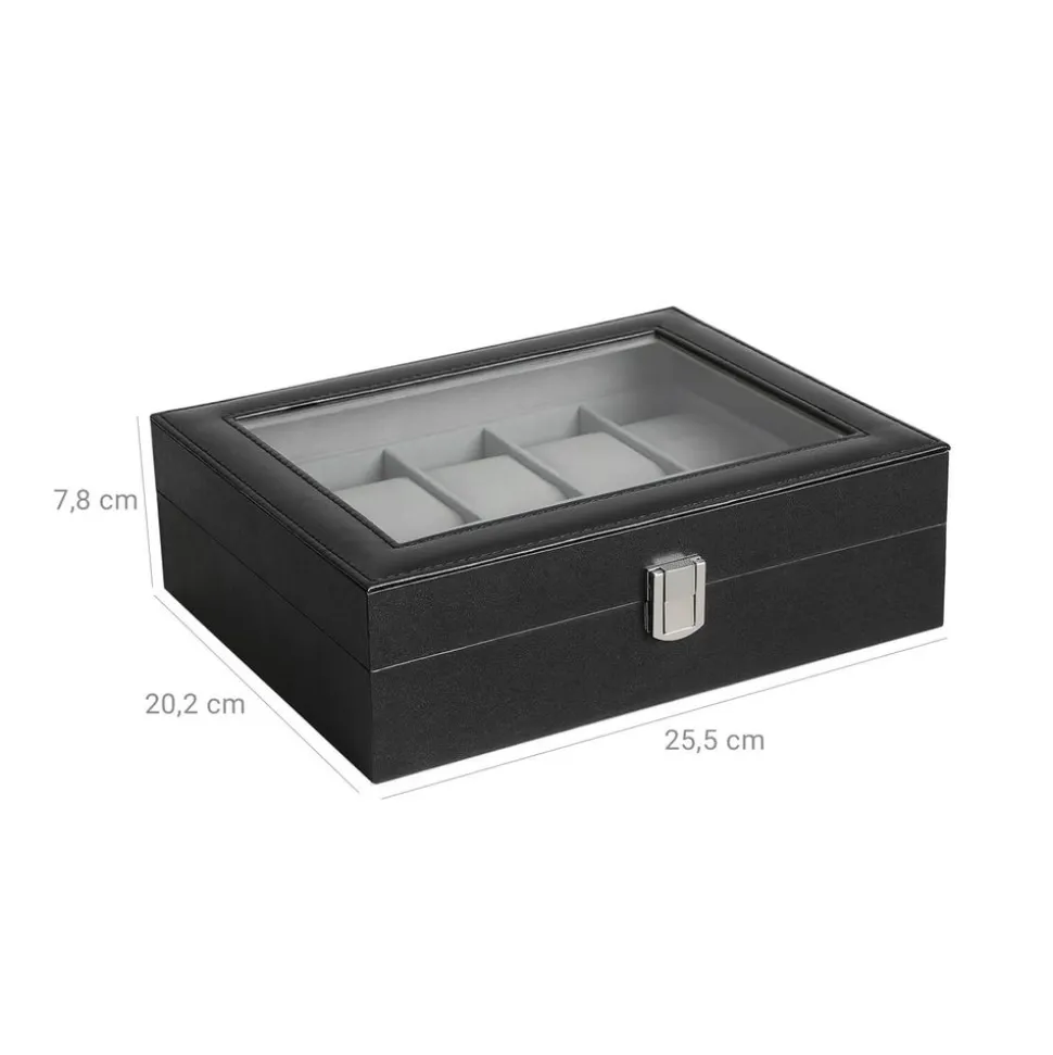 [Tout en ordre] Fini les bijoux introuvables ou tout emmêlés ! Facilitez votre routine beauté avec cette armoire à bijoux chic aux lignes épurées et à la finition marron rustique équipée d’un miroir en verre[Remplissez-la] Après une journée, enlevez vos bijoux et placez-les dans cette armoire à bijoux. 84 places pour bagues, 90 fentes pour boucles d’oreilles, 48 trous pour clous, 32 crochets pour colliers, 5 étagères, 2 tiroirs et 1 barre pour bracelets[À la porte ou au mur ?] À vous de choisir ! Vous pouvez suspendre cette armoire au cadre d’une porte à l’aide des supports inclus ou tout simplement la fixer à un mur à l’aide des vis fournies. Dans tous les cas, elle sera un réel gain de place ![Plus de tranquillité] Vous voulez ranger quelque chose de valeur auquel vous tenez ? Cet organisateur est fait pour cela ! Le verrou de sécurité et les 2 clés éloignent tous les curieux[Idée cadeau] Faites-vous plaisir ou offrez cette armoire à bijoux pratique et design à votre moitié !