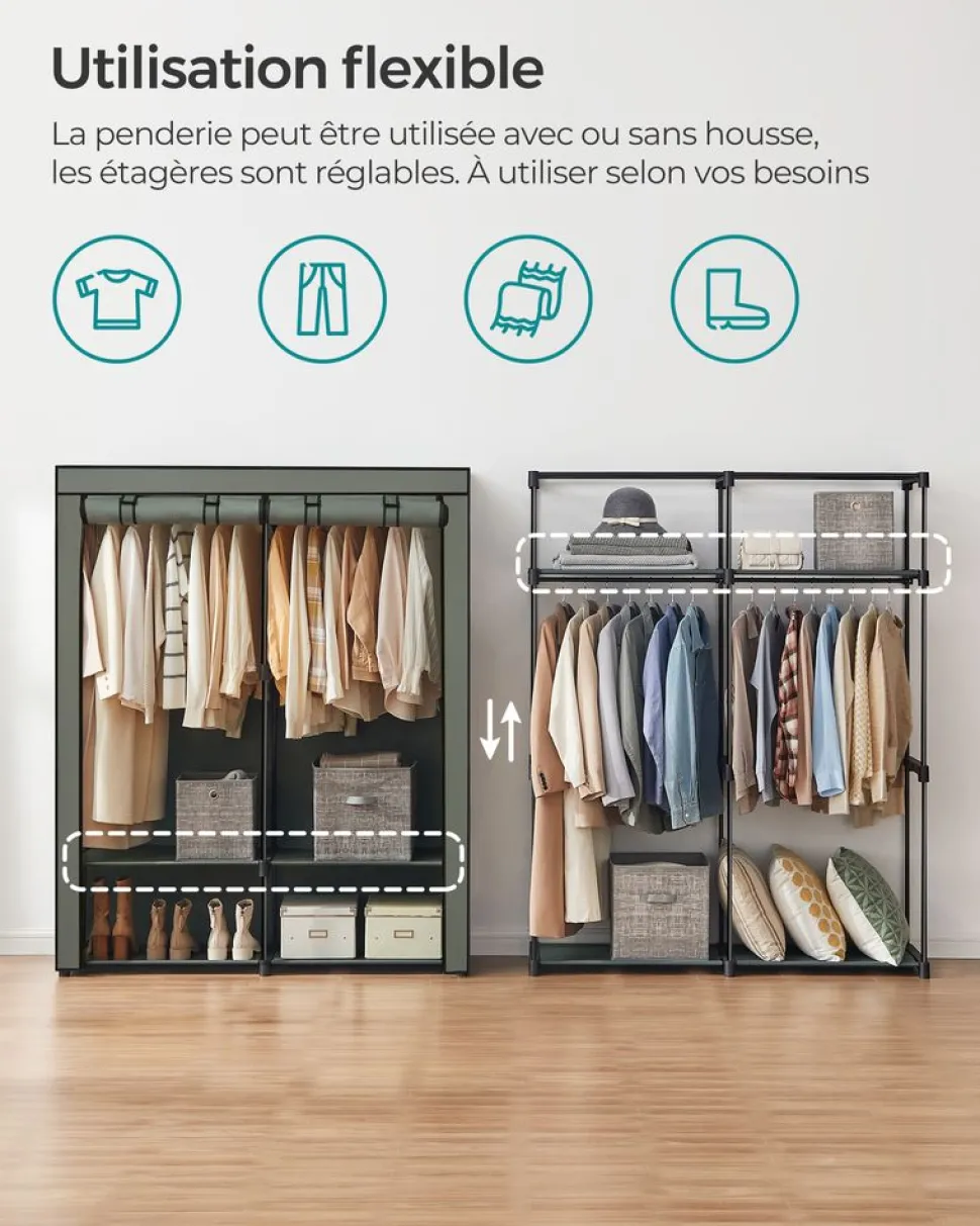 MONTAGE FACILE : Le corps de l’armoire est déjà entièrement monté dans son état de livraison, il suffit de poser les pieds fournis.